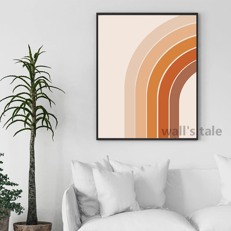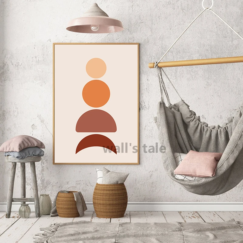 Сгоревшая оранжевая настенная живопись на холсте в стиле бохо Радужная пустыня Луна фазы галерея монстеры настенные картины богемный постер печать Декор