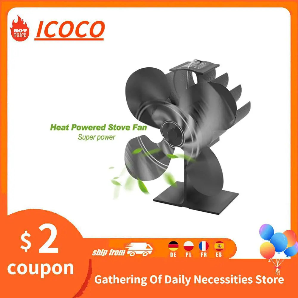 Черный камин 4 лопасти вентилятор для печи, работающий от тепловой ...
