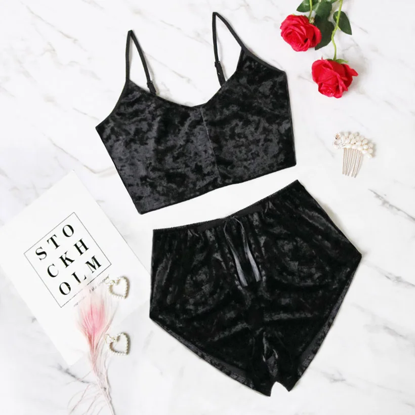 Комплект нижнего белья женский замшевый, пижама с V-образным вырезом и шорты