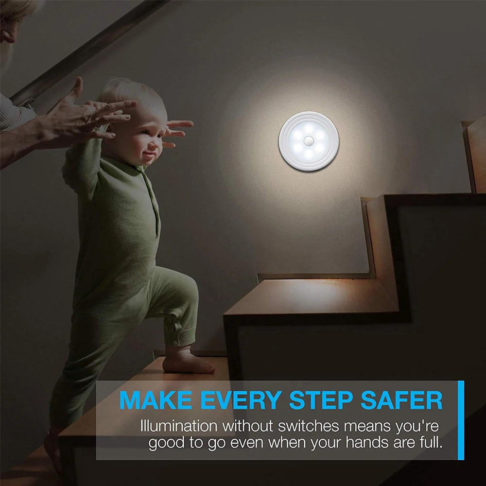 Ночник с датчиком движения, беспроводной круглый светодиодный светильник для чулана, лестницы, коридора, ванной, спальни, кухни, кабинета