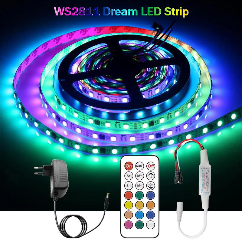DC 12V прибор приемно-WS2811 смарт-пикселей светодиодные полосы светильник комплект 5, 10 м, 15 м, 20 м 5050 RGBIC мечта лента с адаптером + контроллер