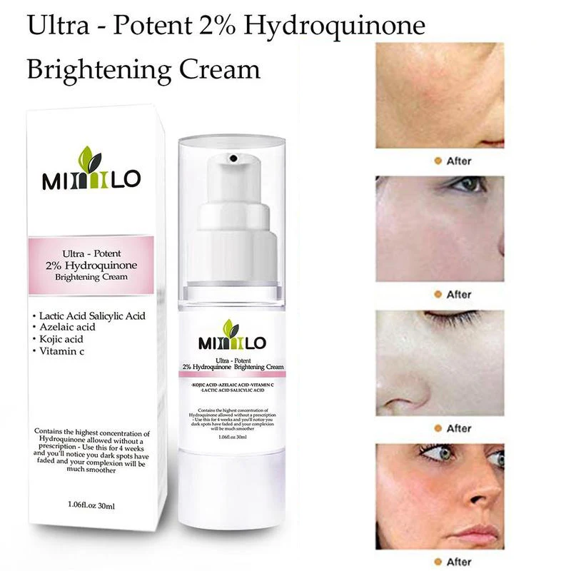 2% гидрохинон. Виргиниана (ведьма орешник) вода. Аква (вода), молочная кислота. Кожиевая кислота, аскорбиновая кислота, салициловая кислота, гидроксипропил метилцеллюлоза, гидроксид натрия.