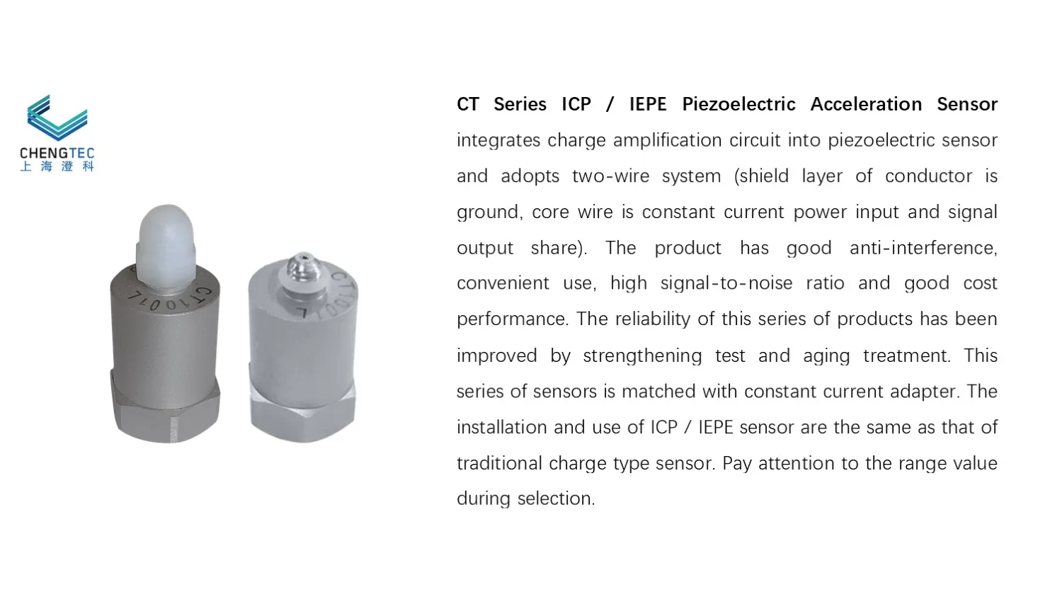 Высокочувствительный пьезоакселерометр Chengtec CT1001L IEPE ICP для испытания на удар и удар, вибродатчик
