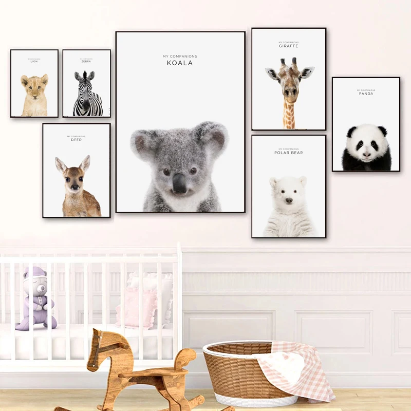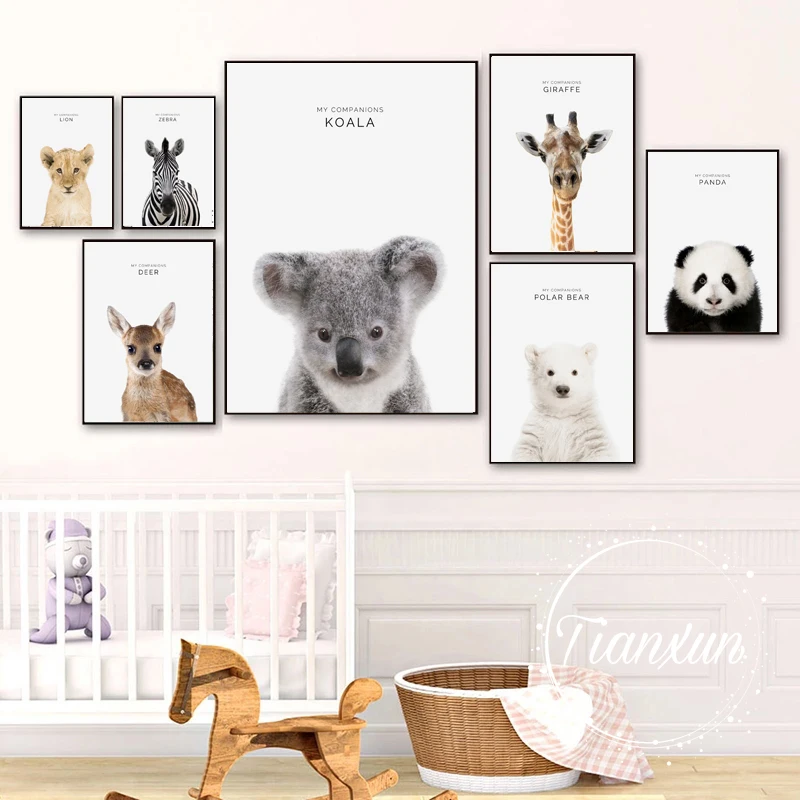Мультяшные милые животные коала Лев Зебра настенная Картина на холс...
