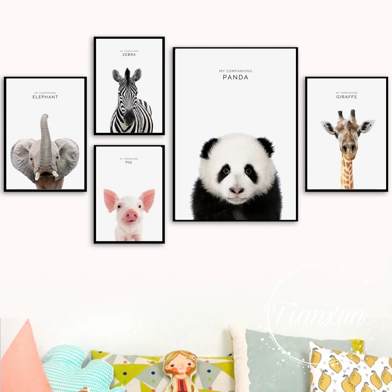 Милые Мультяшные Животные декоративные картины лев ребенок слон Дет...