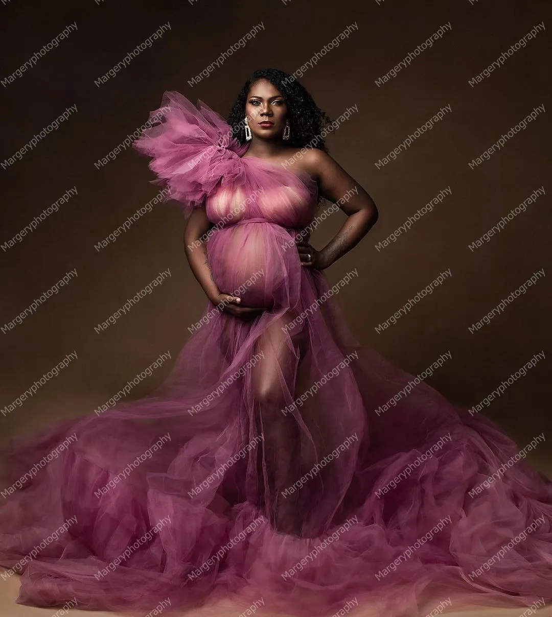 Пышное розовое Тюлевое платье для беременных женщин, длинные халаты...