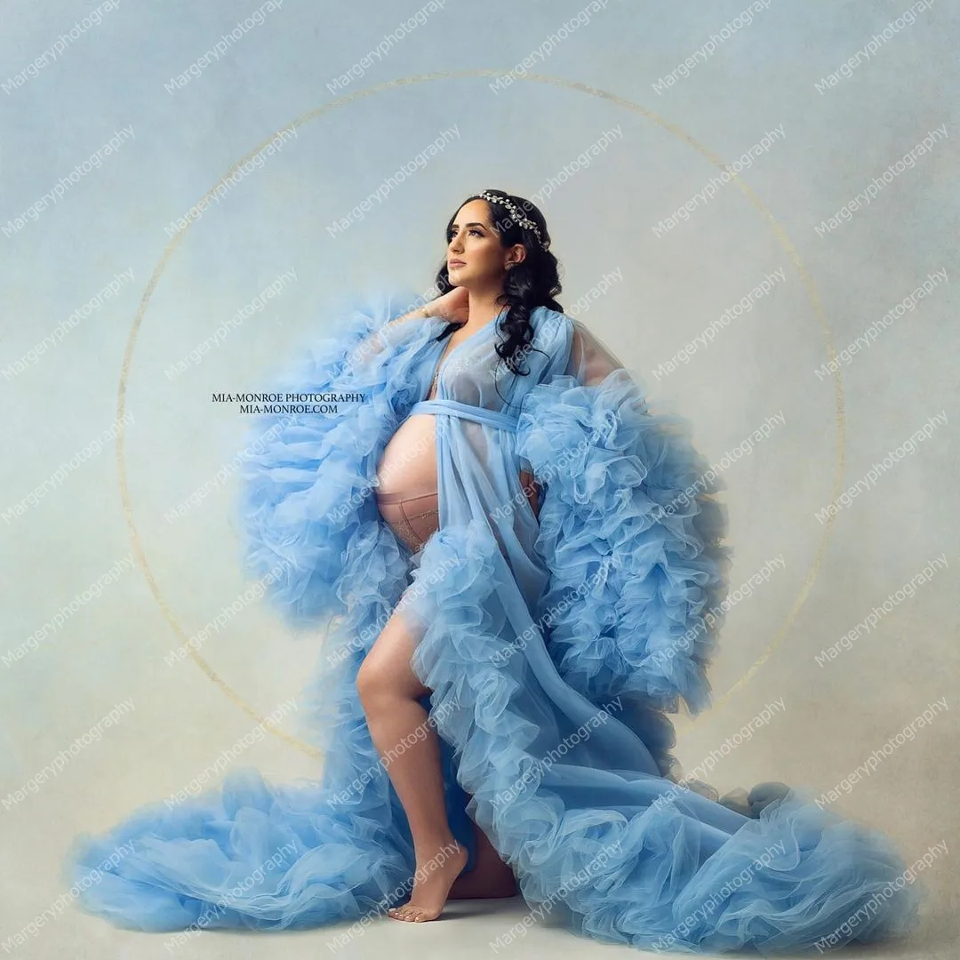 Пышное розовое Тюлевое платье для беременных женщин, длинные халаты...