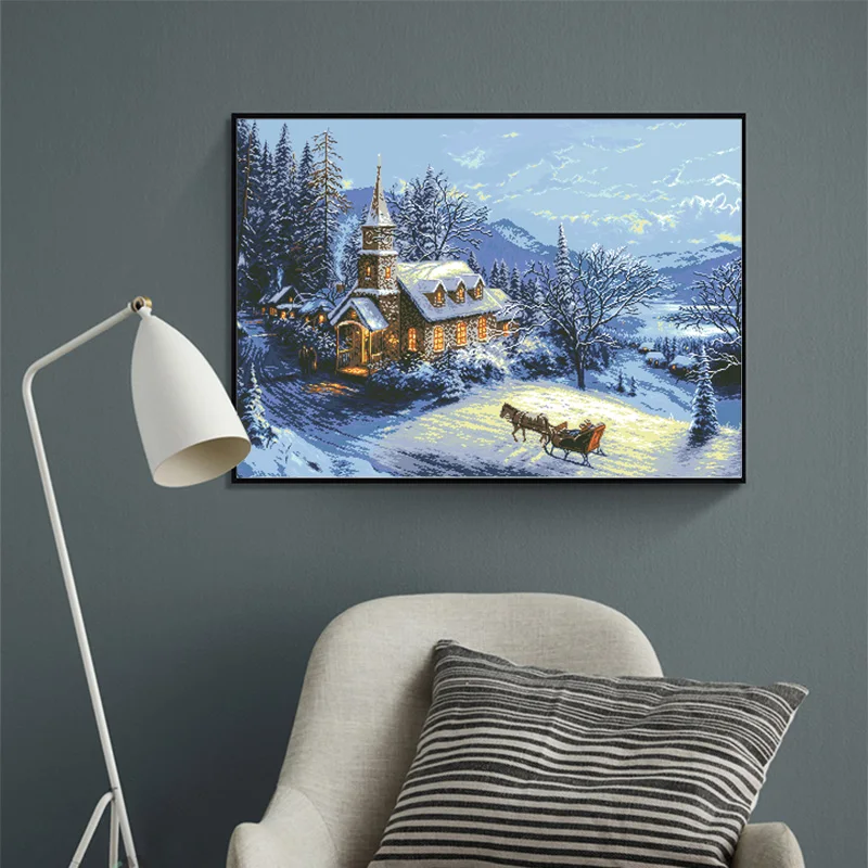 Домик в снегу Наборы для вышивания крестиком предварительно напечатанный холст Набор для вышивания 11CT 14CT Diy рукоделие хобби и рукоделие ручная работа