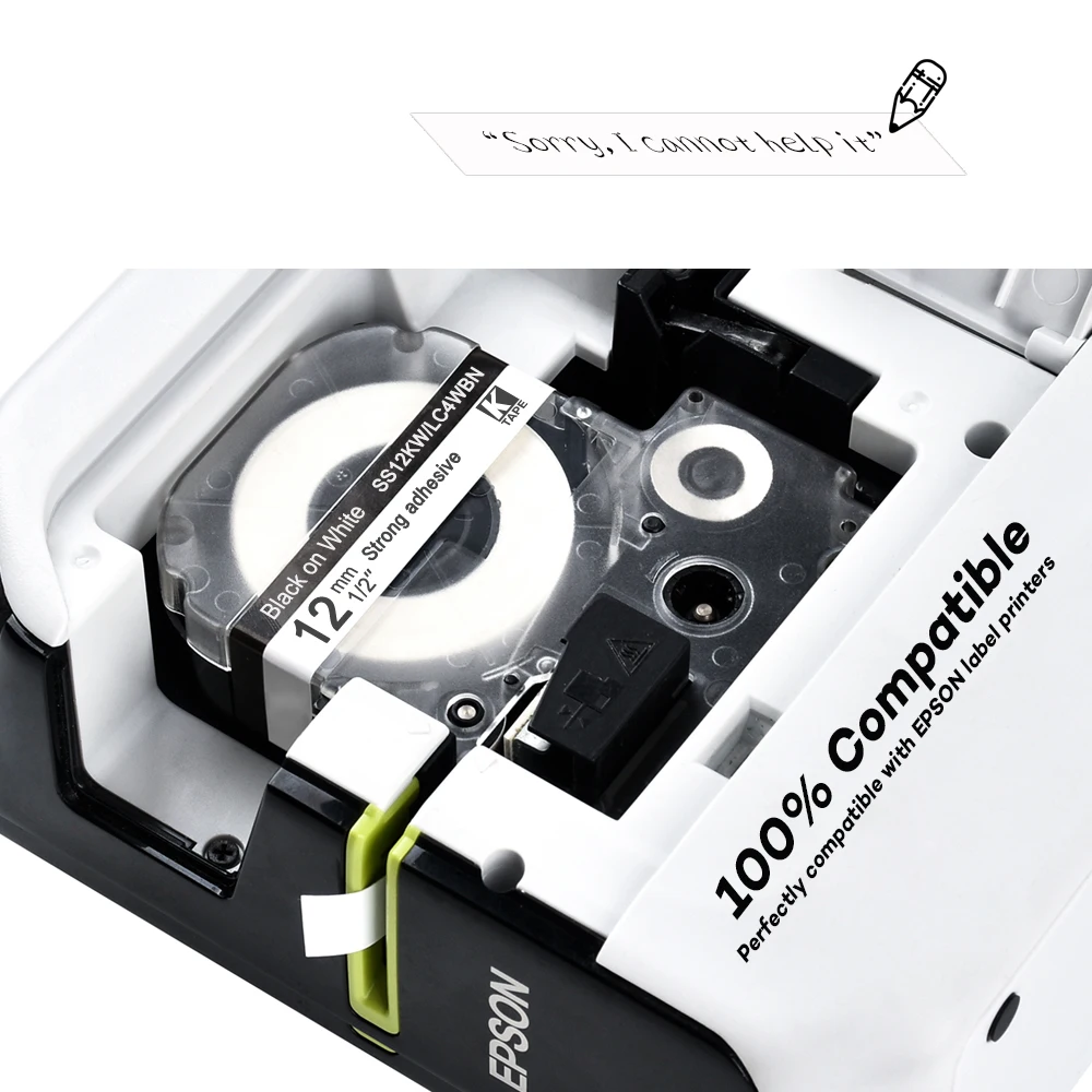 5 упаковок 12 мм черно-белая совместимая этикетка Epson LC-4WBN / SS12KW SC12RW SC12YW ST12KW для принтера Epson LW300 LW400 500 600