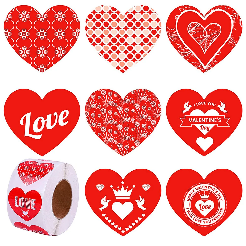 Наклейки бумажные в форме сердца, на День Св. Валентина, 500 шт.рулон