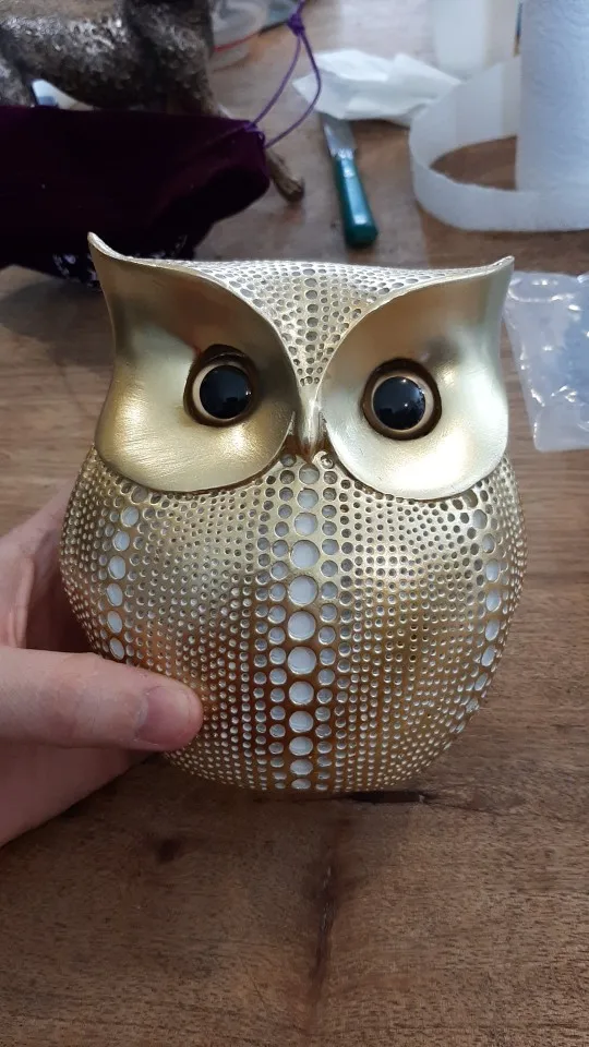 Замечательные совушки, конечно не идеально сделано, но и совсем плохо. Брала со скидкой по купону за 344 руб, в наличии была только золотая, а потом продавец ещё добавил товар и я взяла ещё белую, ещё дешевле (265 руб., сработал купон и промокод). Упаковано было в пенопласт и воздушную подушку.