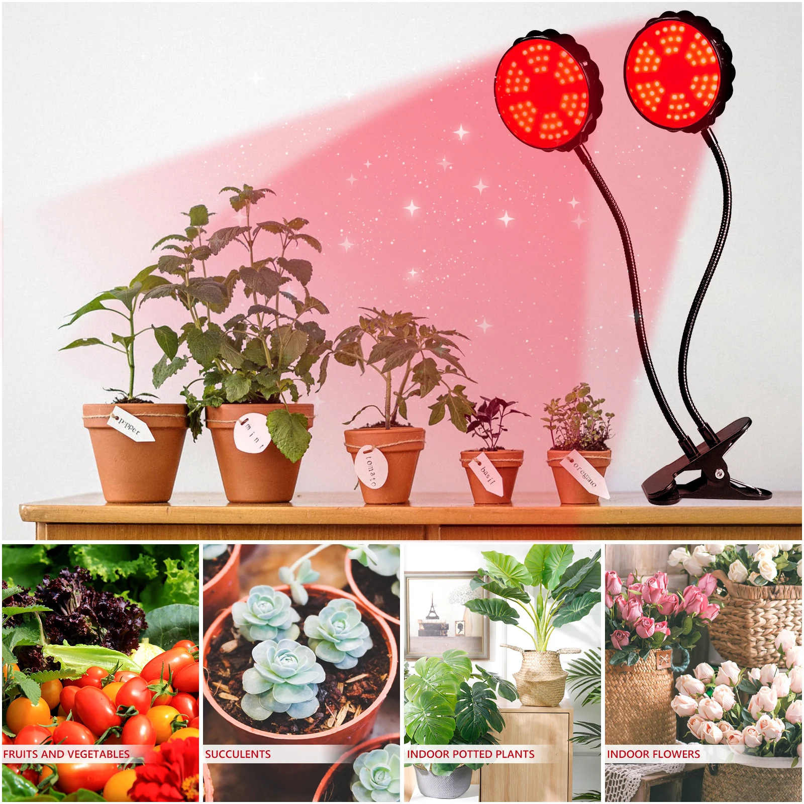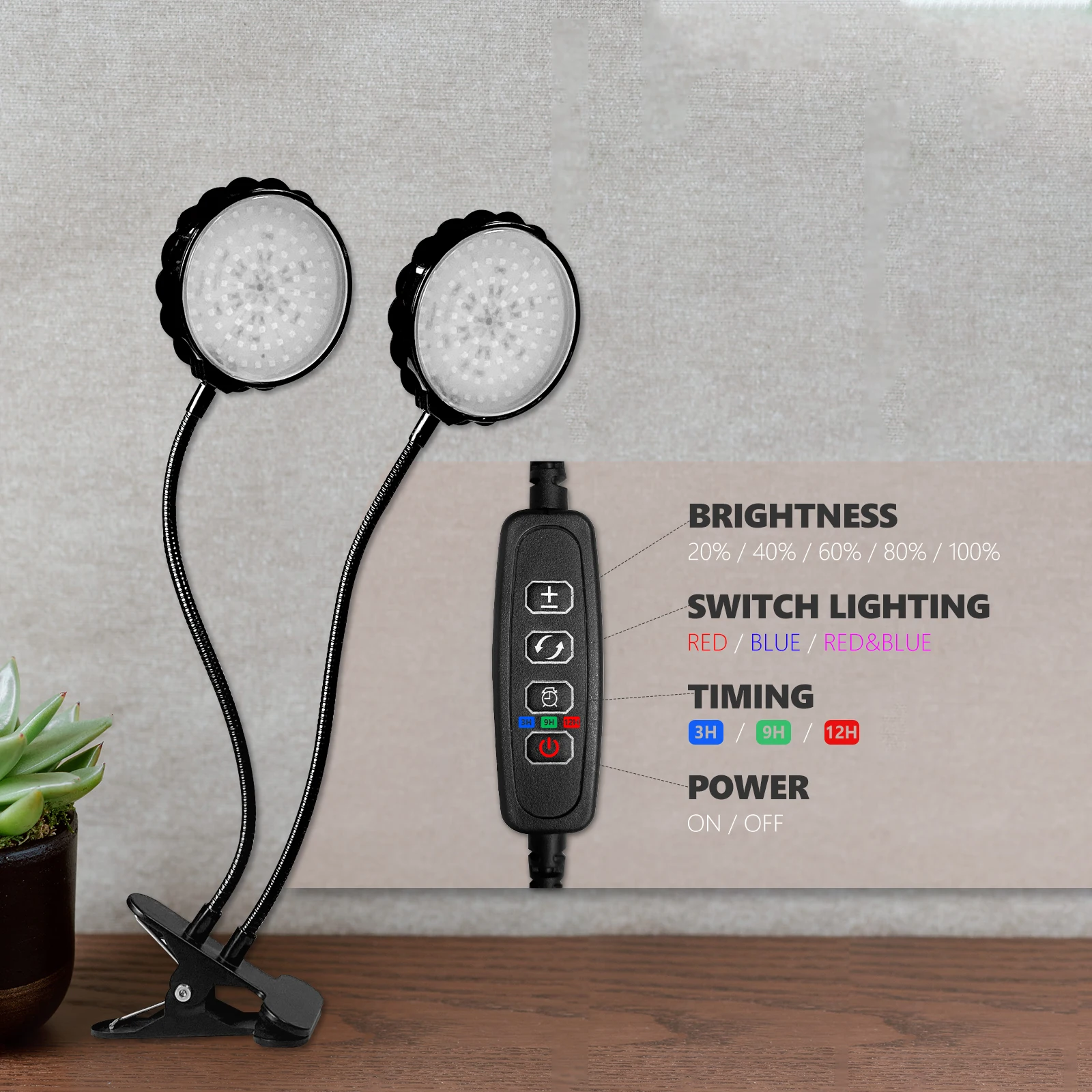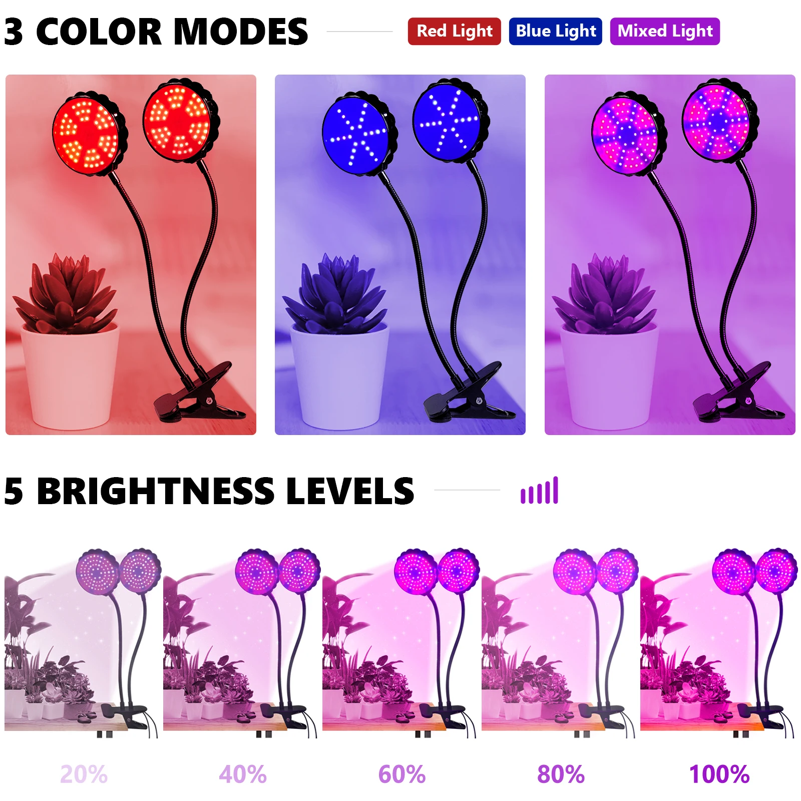 Двойной таймер, вам нужно установить таймер только один раз. 3 режима таймера-4 часа, 8 часов и 12 часов. 5 режимов яркости с регулируемой яркостью 3 варианта выбора количества освещения и переключателя Красного/синего света. Изготовлен из алюминия и ПВХ, легкий и прочный с хорошей теплоотдачей. Низкое потребление и экологичность. IP65 Водонепроницаемый, не нужно выключать его при поливе растений. 360 ° гибкие goosenecks позволяют регулировать любое направление или область освещения. Синий светильник влияет на образование хлорофилла, позволяя растению потреблять больше энергии. Растения, получающие большой синий светильник, растут с прочными, здоровыми стеблями и листьями. Этот процесс называется photomorphogenesis. Красный светильник способствует оптимальному развитию. Это важно для ранней жизни растения для прорастания семян, роста корней и развития лампочек. Это также делает растение более хорошим результатом при цветении.