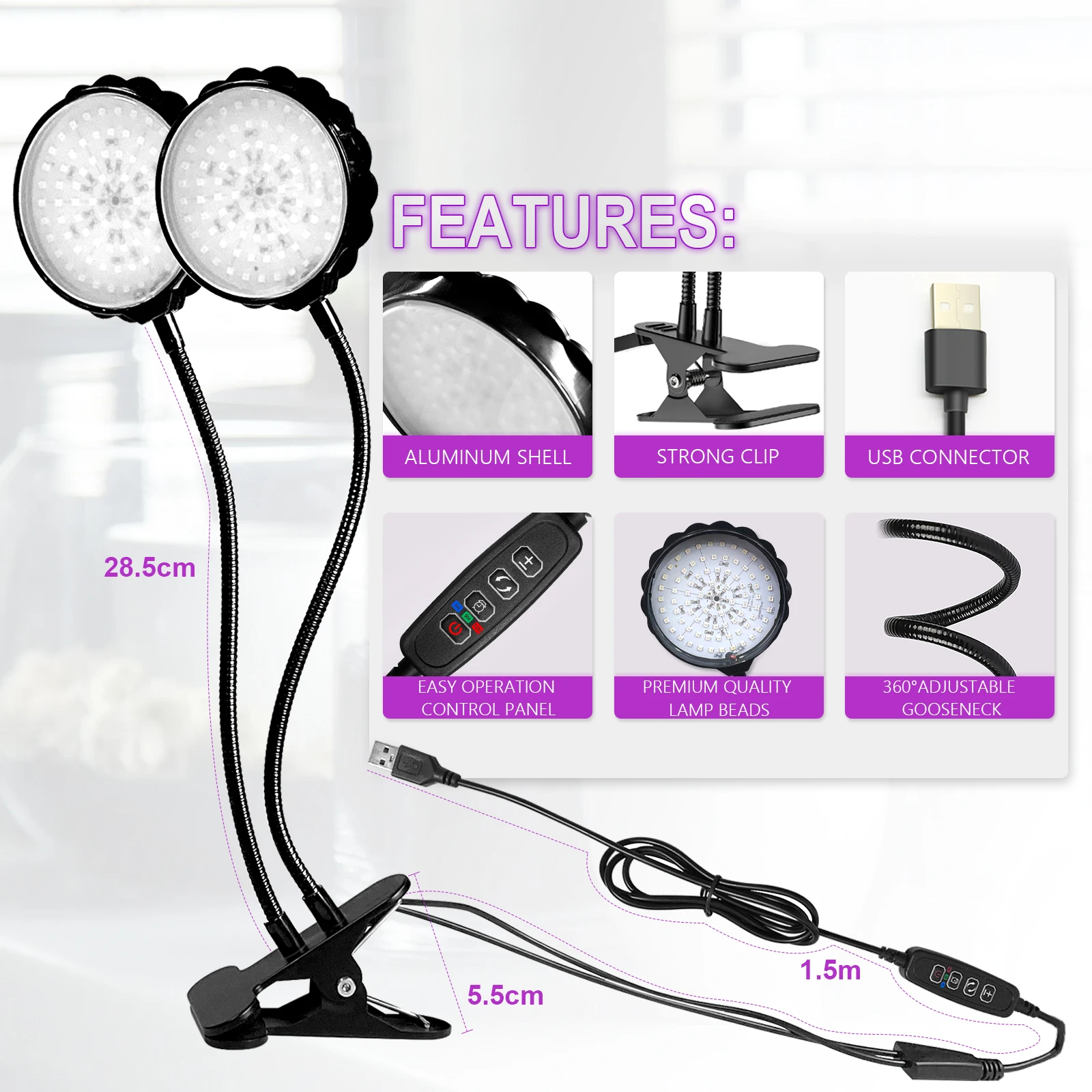 feature 14USB Grow Lights Flexible Hose