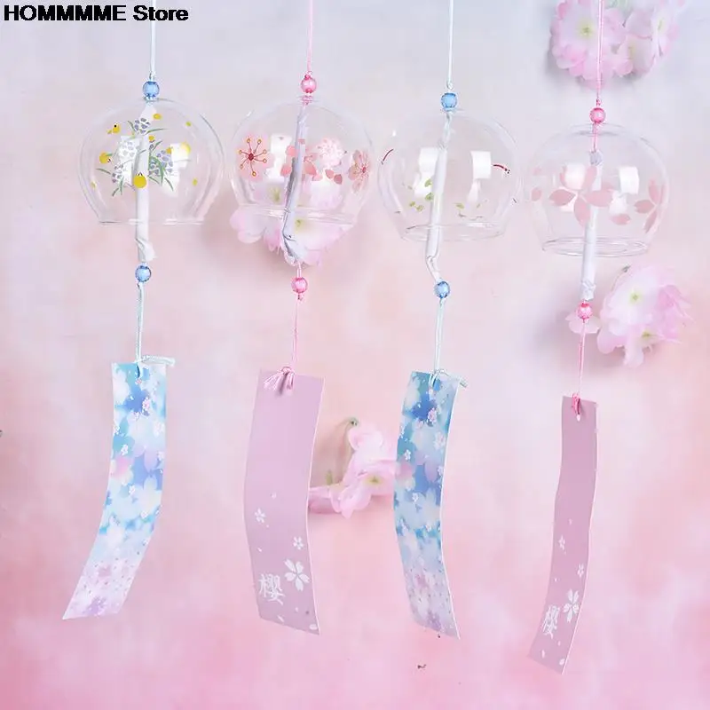 Стеклянные Колокольчики в японском стиле, подвесные колокольчики, сакура узор цветущей сакуры, Декор для дома