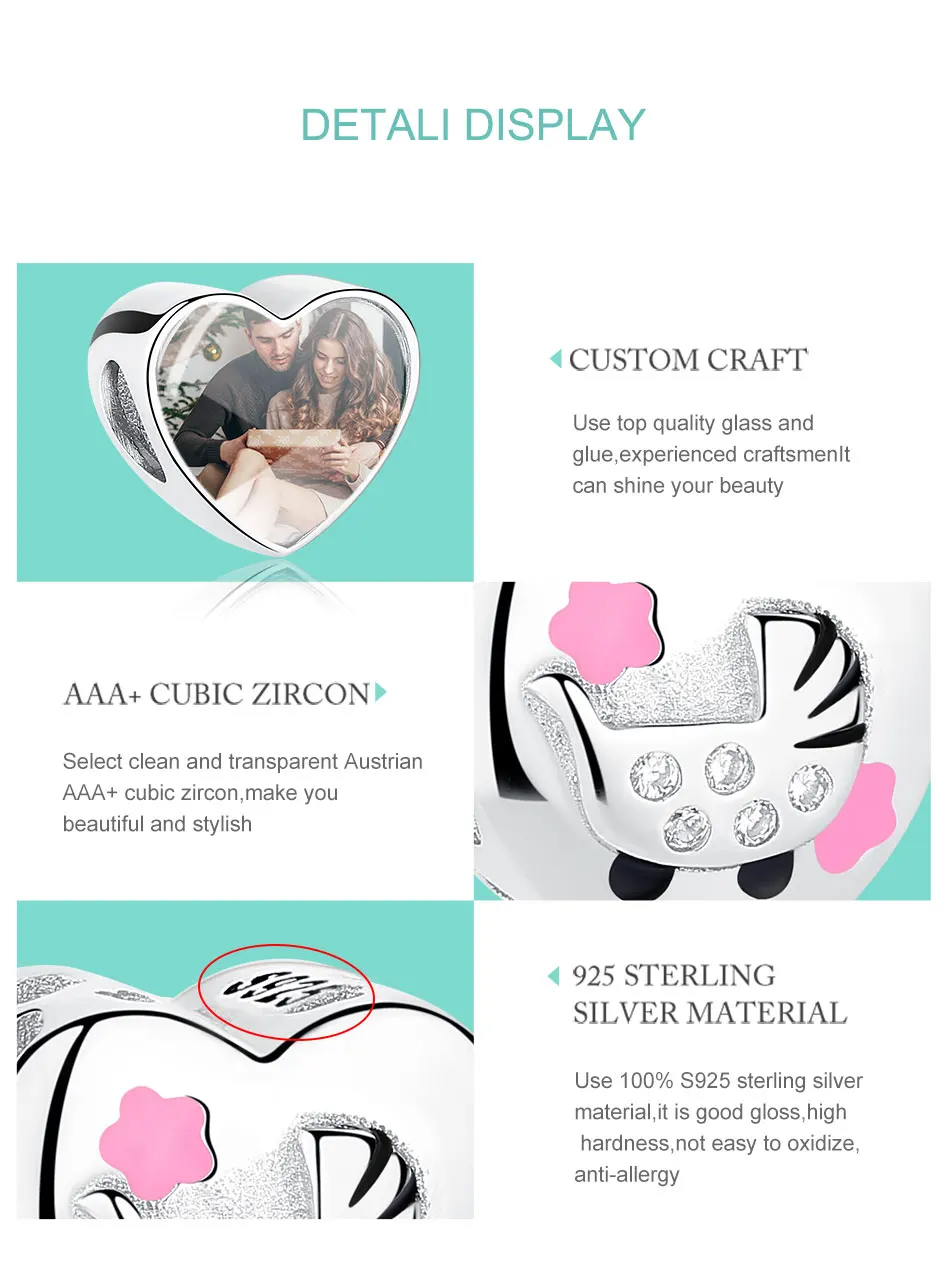 ELESHE 925 стерлингового серебра детское кресло сердце на заказ фото шарик для женщин и девочек детей подходят для браслетов, сделай сам, ювелирное изделие