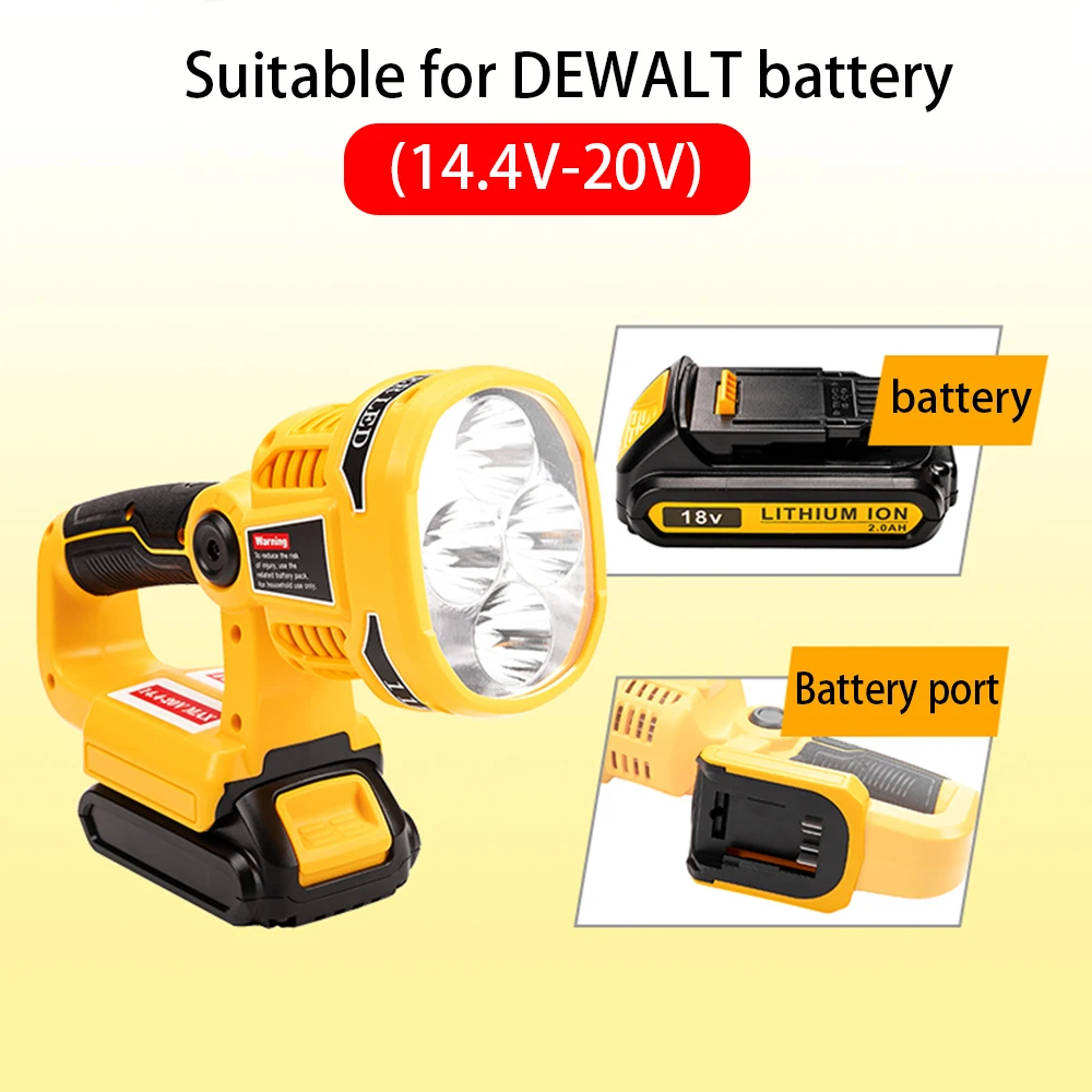 Портативный ручной светодиодный светильник 20/60 в, совместим с литий-ионными аккумуляторами DEWALT 20 в/60 в, такими как DEWALT DCB204 4.0AH, DCB205 5.0AH, DCB206 6.0AH, DCB606 6.0AH, DCB609 9.0AH, dc0ah, dc0ah DCB324 4.0AH. (Только корпус, аккумулятор в комплект не входит)