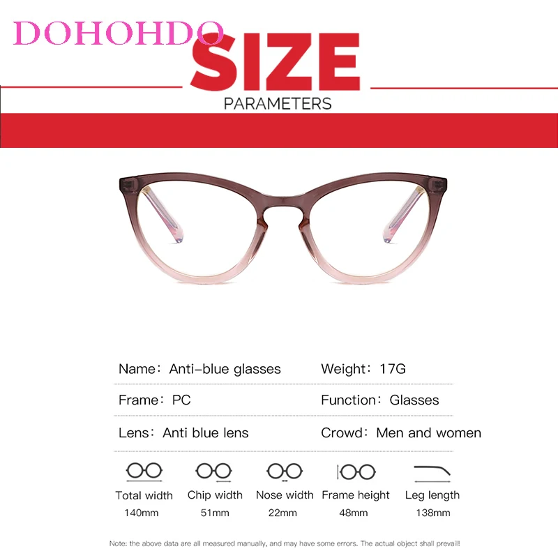 Очки DOHOHDO женские с защитой от синего света, Модные оптические очки кошачий глаз в оправе, TR90, прозрачные UV400