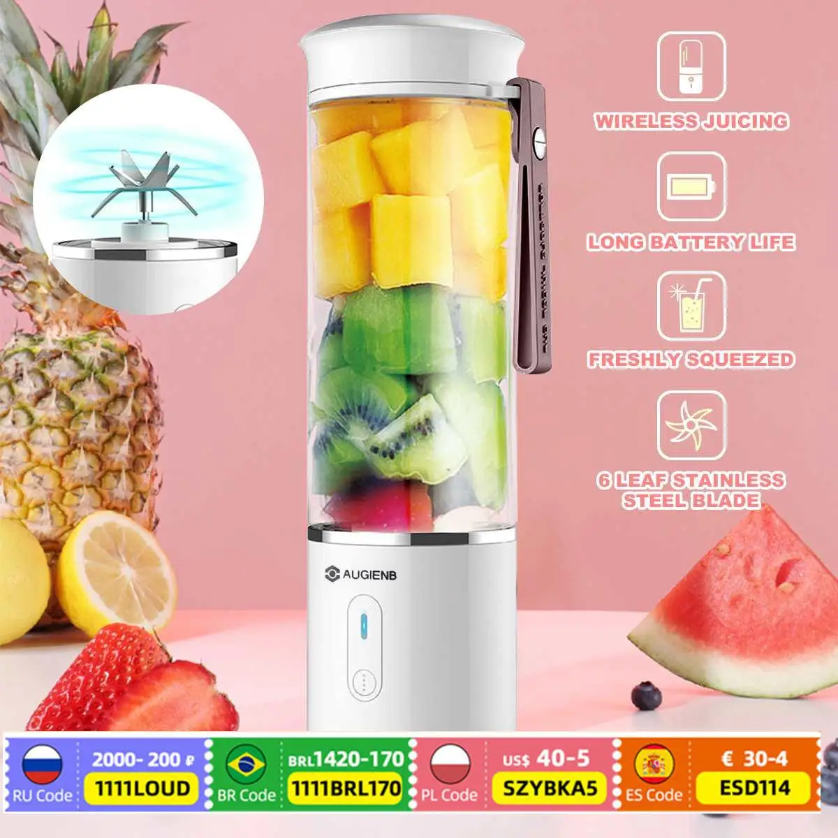 AUGIENB 500 мл электрическая соковыжималка для фруктов Стекло Мини Ручной Портативный смузи мейкер блендер смеситель USB Перезаряжаемые для дома и путешествий