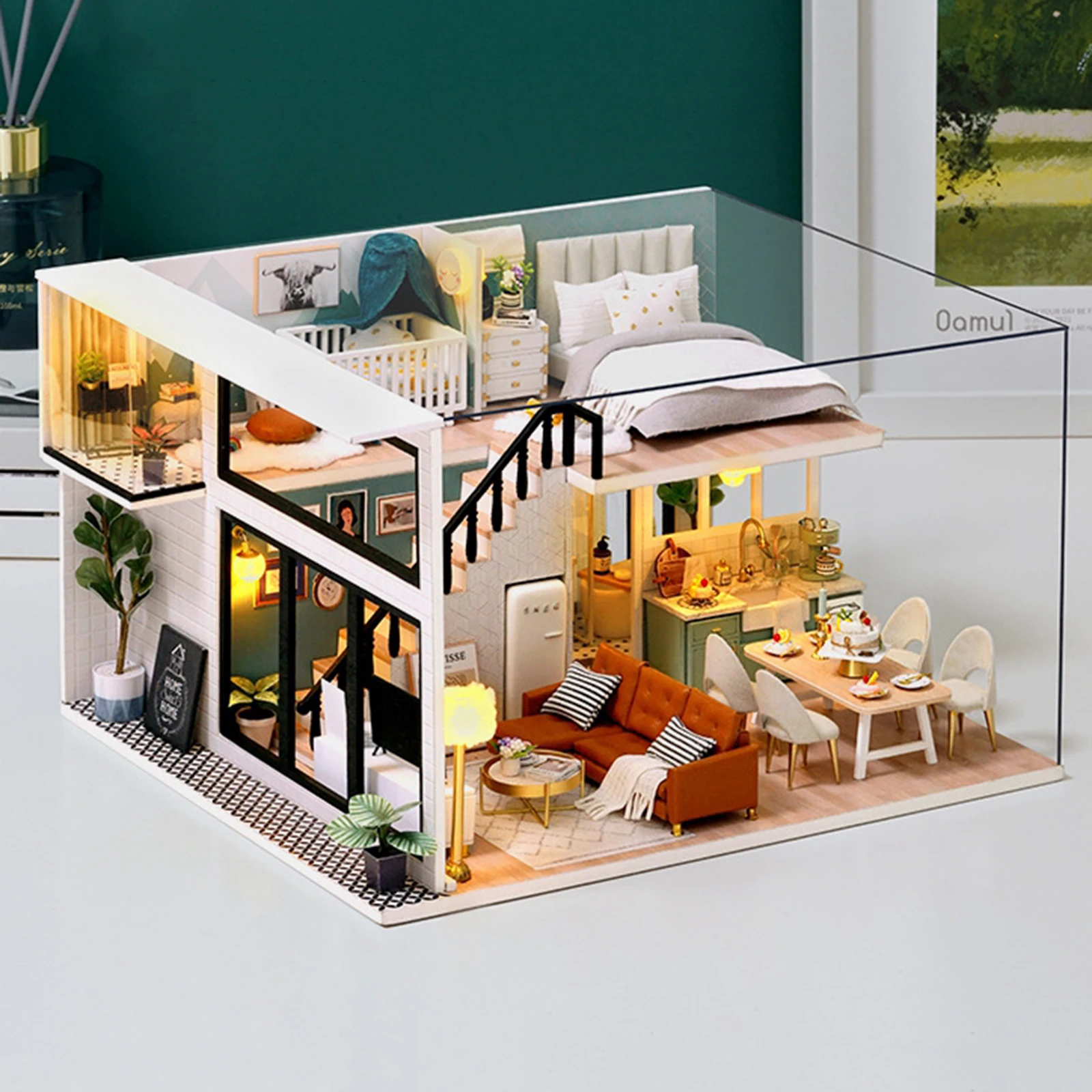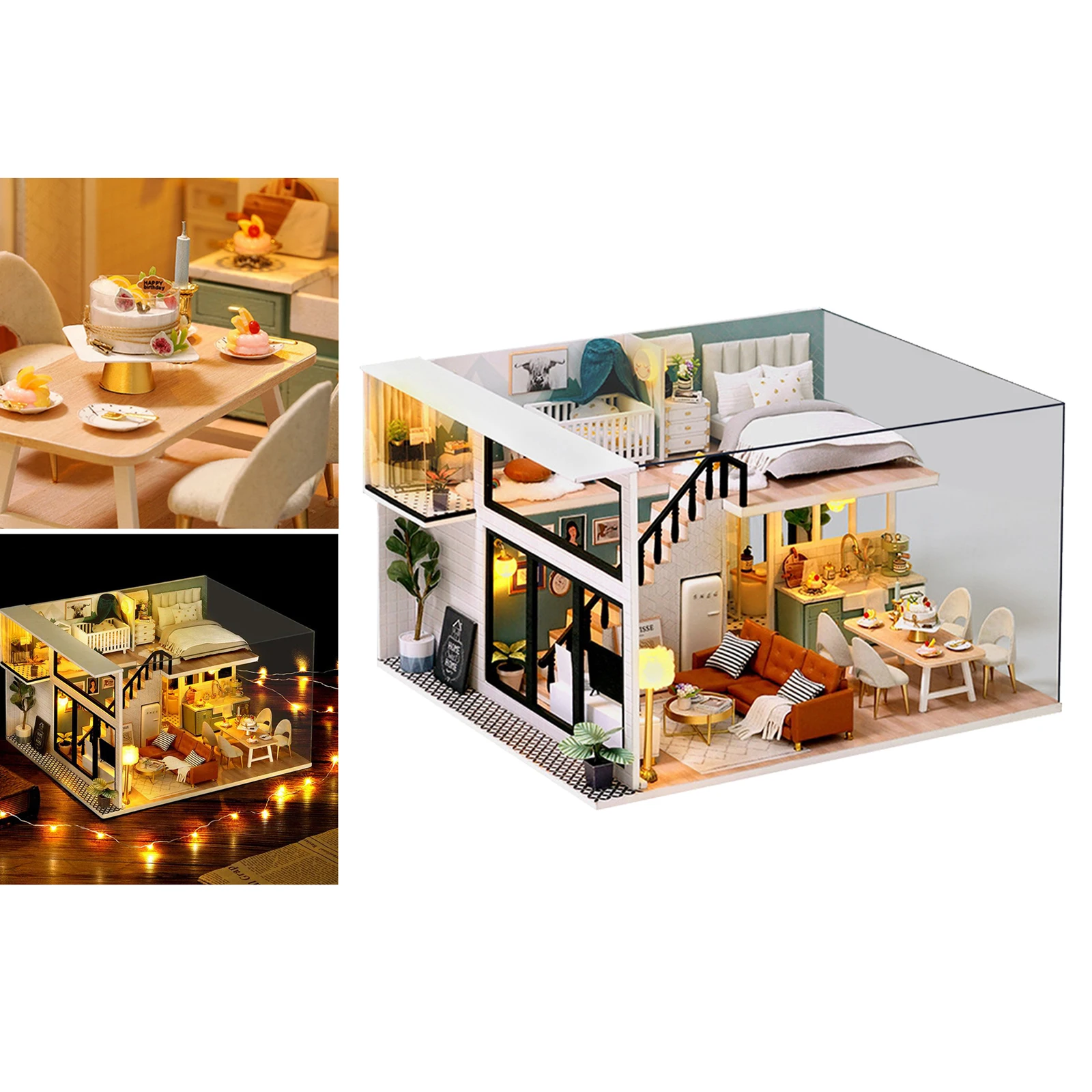 Набор для сборки кукольного домика с мебелью, подсветкой и орнаментом растения масштаб 1:24 деревянный