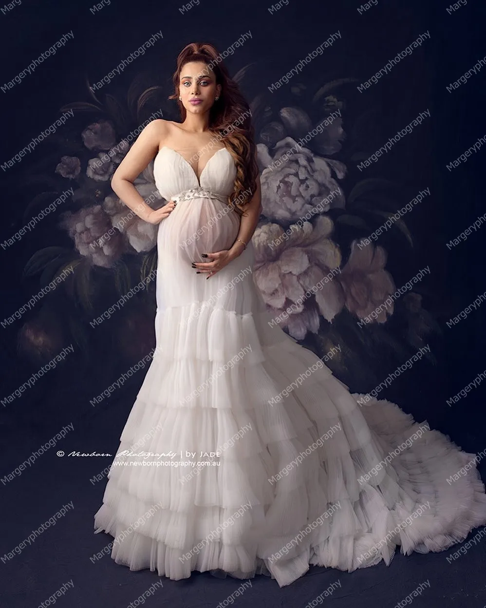 Новое поступление платья для беременных с бисером для фотосессии бе...
