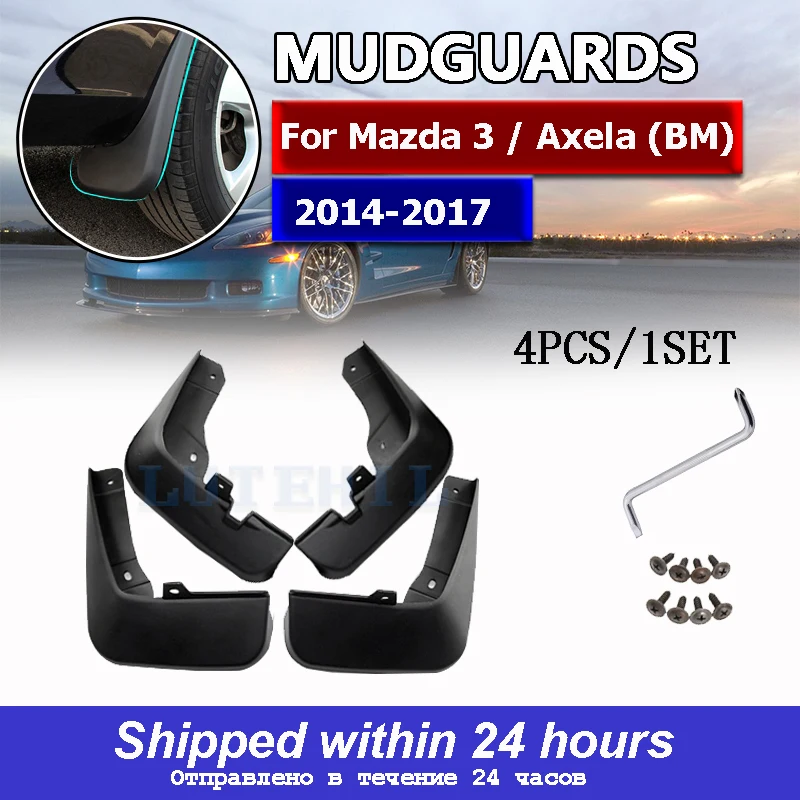 Брызговики передние и задние формованные для Mazda 3 (BM) Axela 4-дверного седана 2014-2017, брызговики 2015, 2016