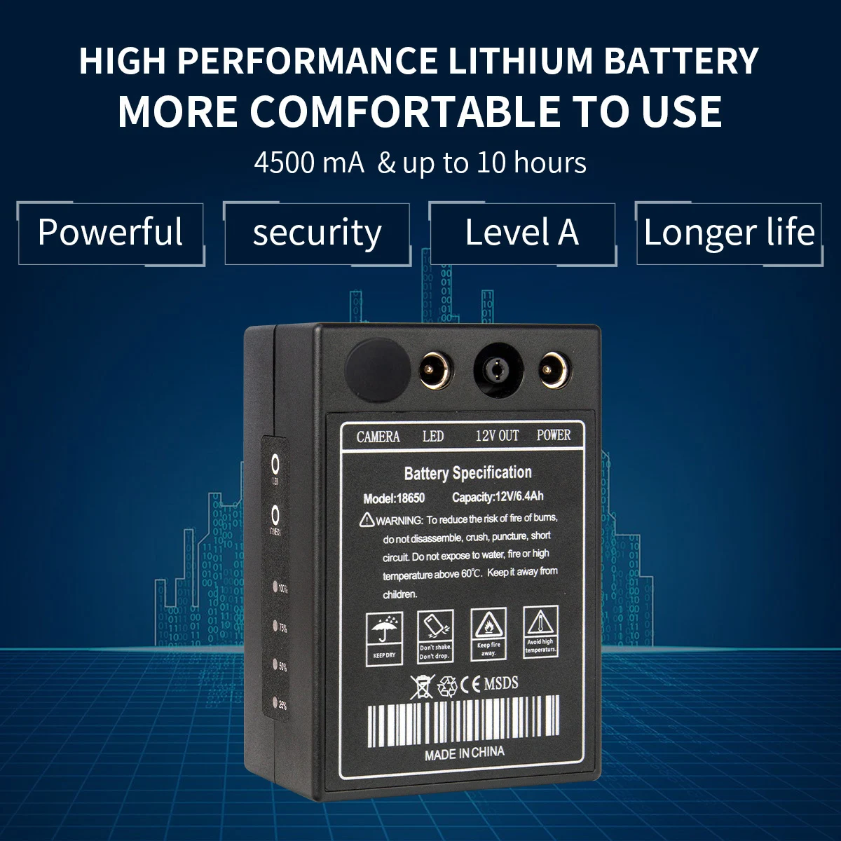 Зарядное устройство: 100VAC-240VAC DC12.6V 1000MAБатарея: литиевая батарея 6,4 Ач, непрерывное использование батареи до 10 часов