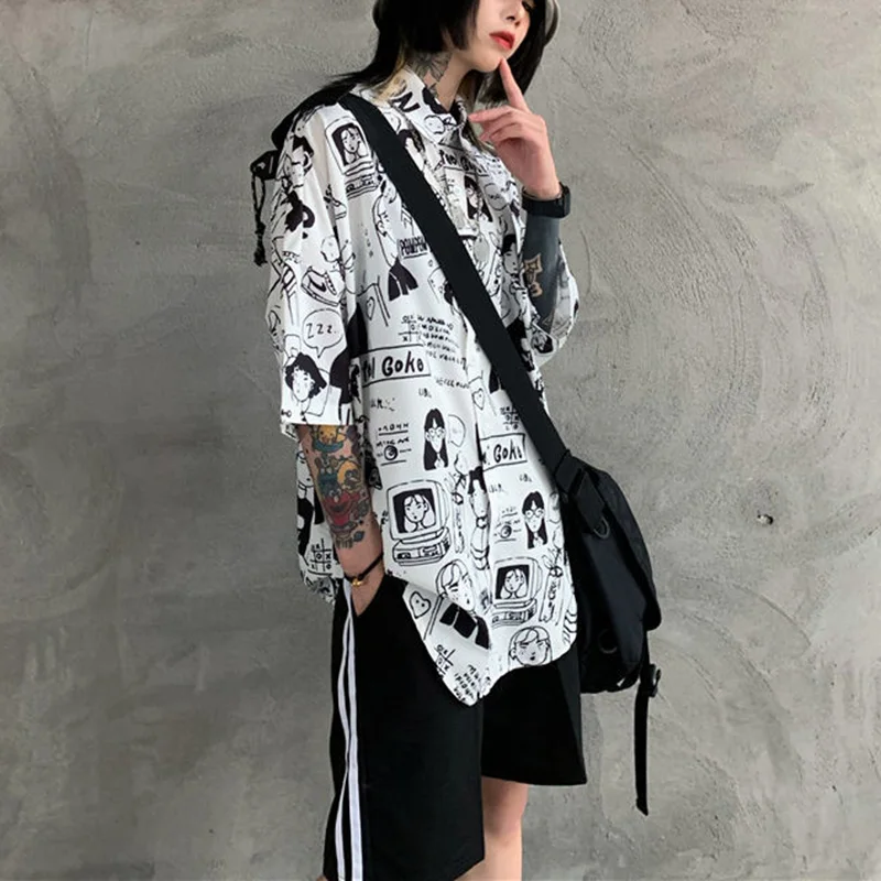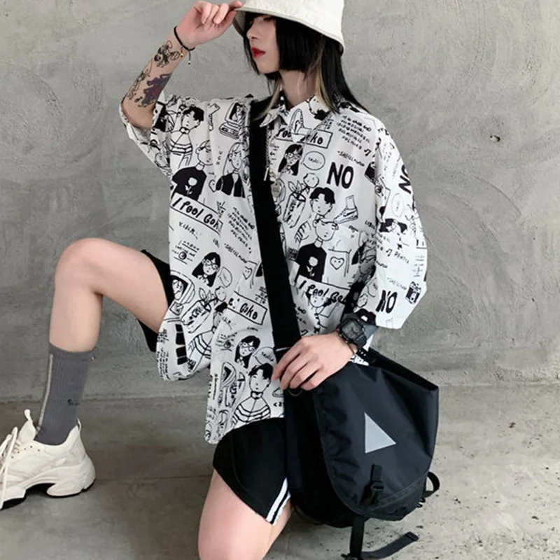 Женские винтажные рубашки с принтом аниме Harajuku, лето 2021, модн...