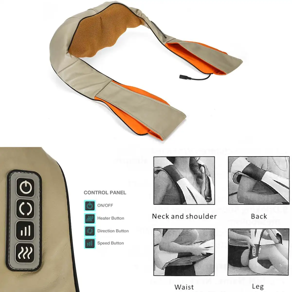 Электрический шиацу массажер 110-220 В, 25 Вт, 4 клавиши, U-образная форма, для спины, шеи, плеч, тела, инфракрасный подогрев, разминающее массажное устройство 4D для автомобиля и дома
