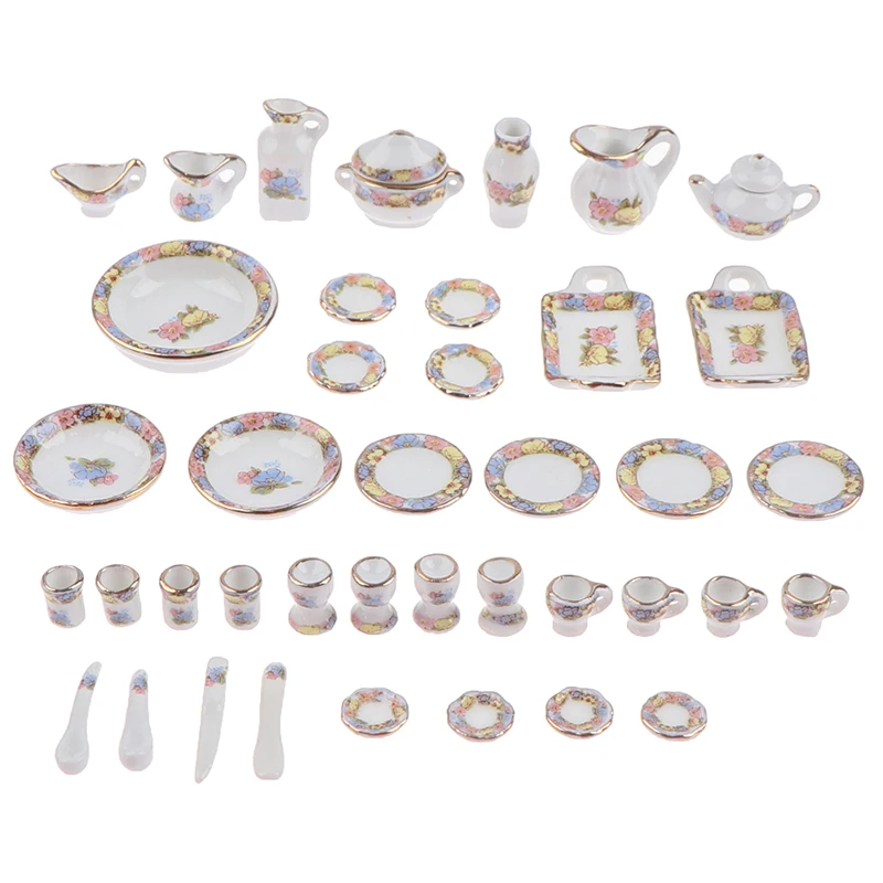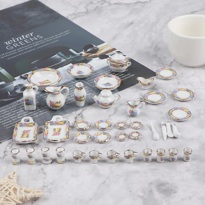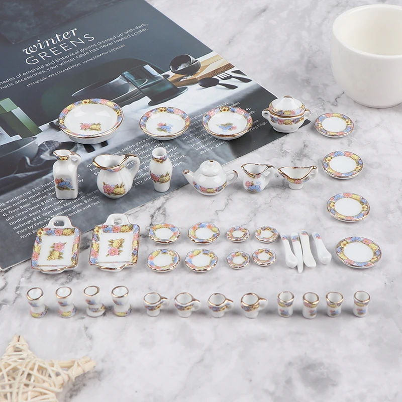 40 шт. 1:12 миниатюрная посуда для кукольного домика, фарфоровая керамическая чайная чашка, набор тарелок, имитация кухонных игрушек