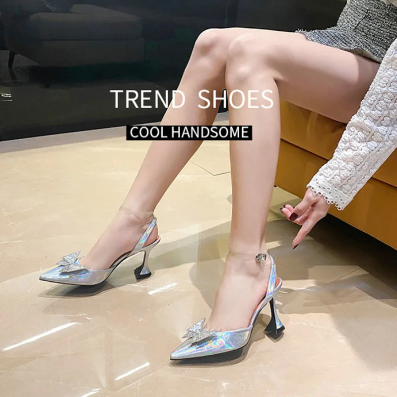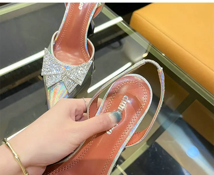 Женские сандалии стразы с бантом-бабочкой, босоножки на тонком кабл...
