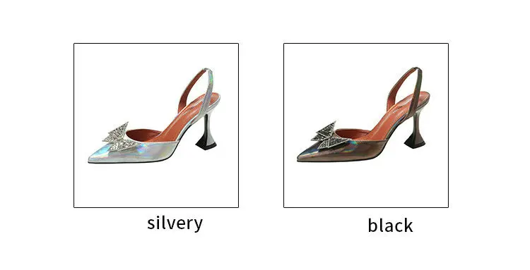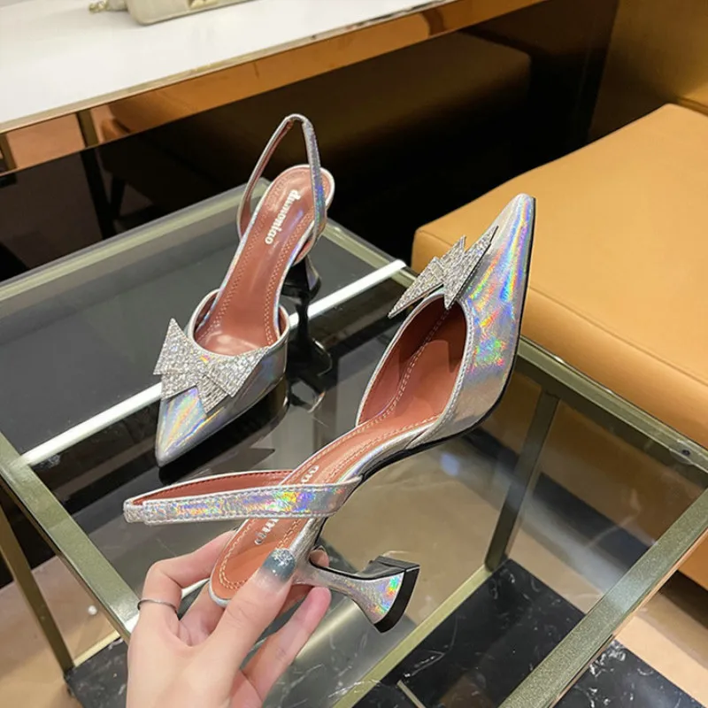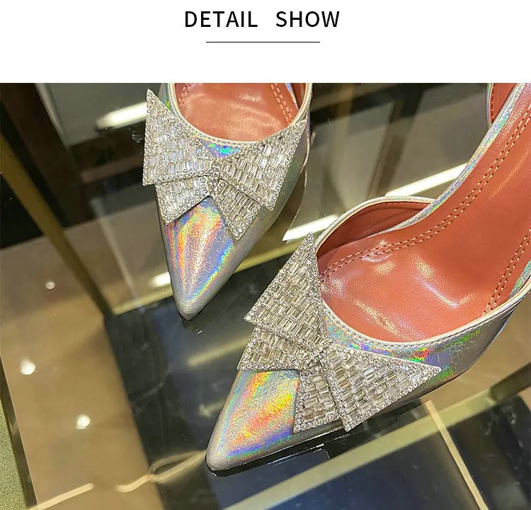 Женские туфли с острым носком, серебристые туфли на высоком каблуке...