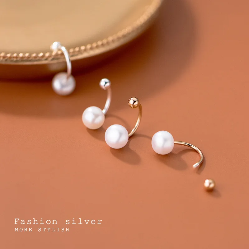 Женские серьги-гвоздики из серебра 925 пробы, с искусственным жемчугом