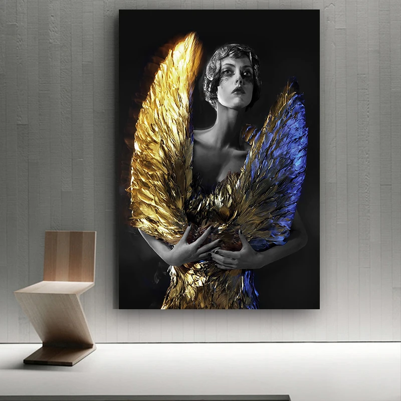 Большой плакат большого размера, Женская фигурка, картина, холст черного и золотого цвета, настенное искусство, Современная искусственная картина без рамки