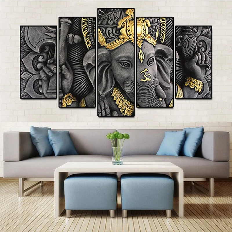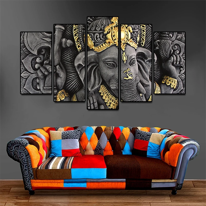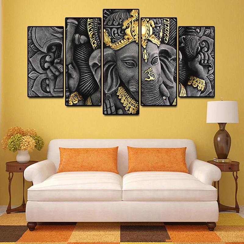 5 шт. HD-печать, статуя индуистского Ганеша, художественная картина, постер, гостиная, спальня, подвесная картина, украшение для дома без рамки