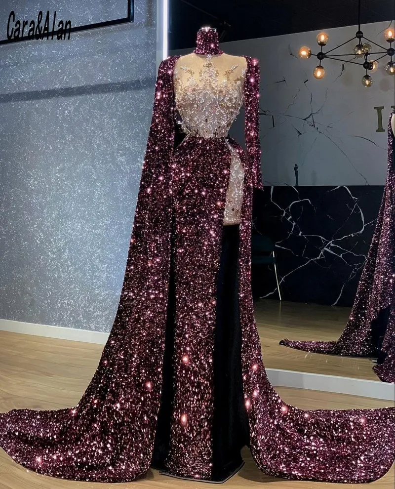 Вечернее платье из Дубая, с длинными рукавами и бисером, празднично...