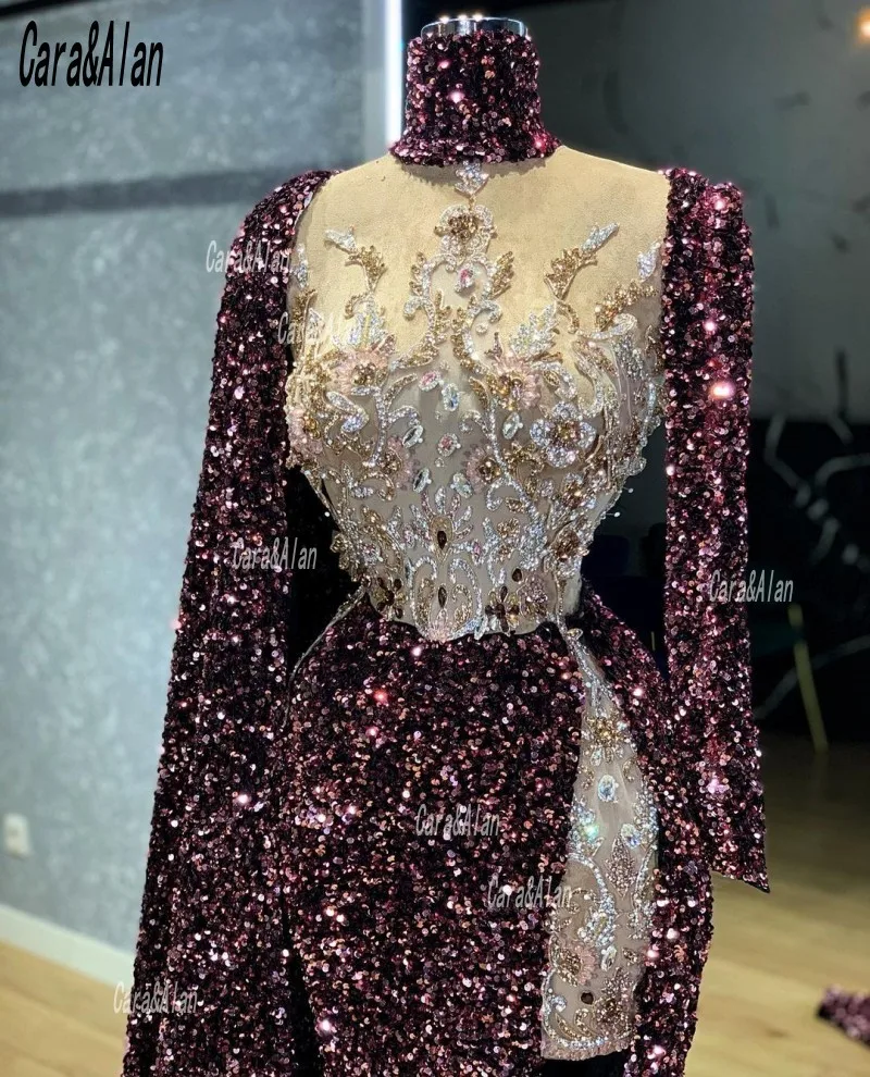 Блестящие шоколадные платья для выпускного вечера, вечернее платье с высоким воротником, бусинами, блестками и юбкой-годе, женские вечерние платья, платья для знаменитостей, 2021