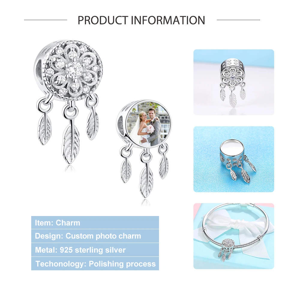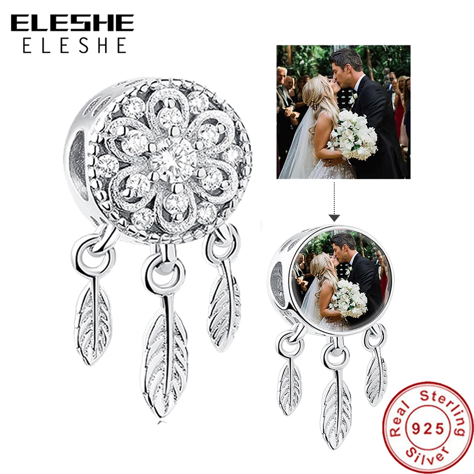 ELESHE прозрачными камнями Круглый в стиле Ловец снов; Студийной съемки под заказ Шарм 925 стерлингового серебра персонализированные бусины для браслетов, для женщин, сделай сам, ювелирное изделие