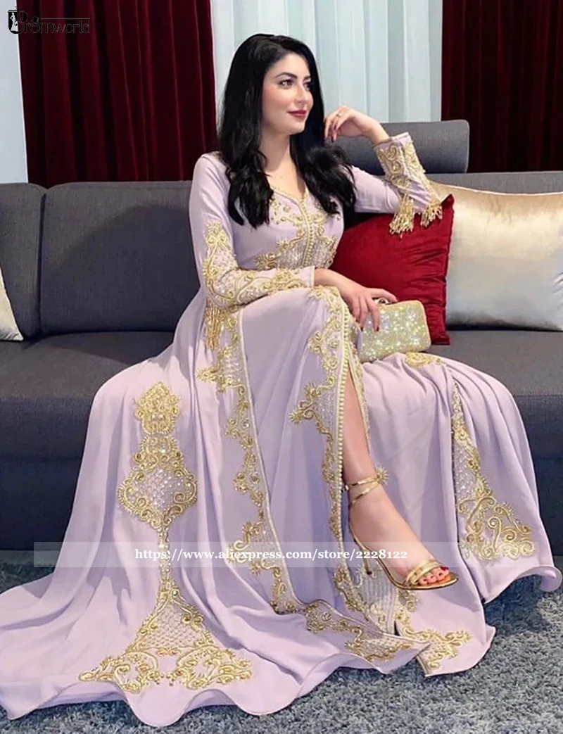 Роскошные сиреневые мусульманские Вечерние платья из бисера и кружева трапециевидного силуэта с длинным рукавом платья для вечеринки свадебное платье