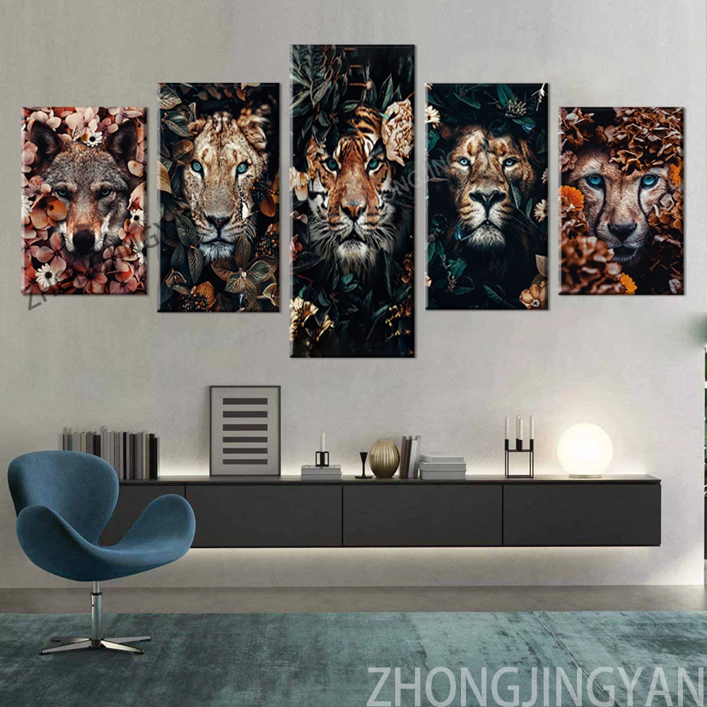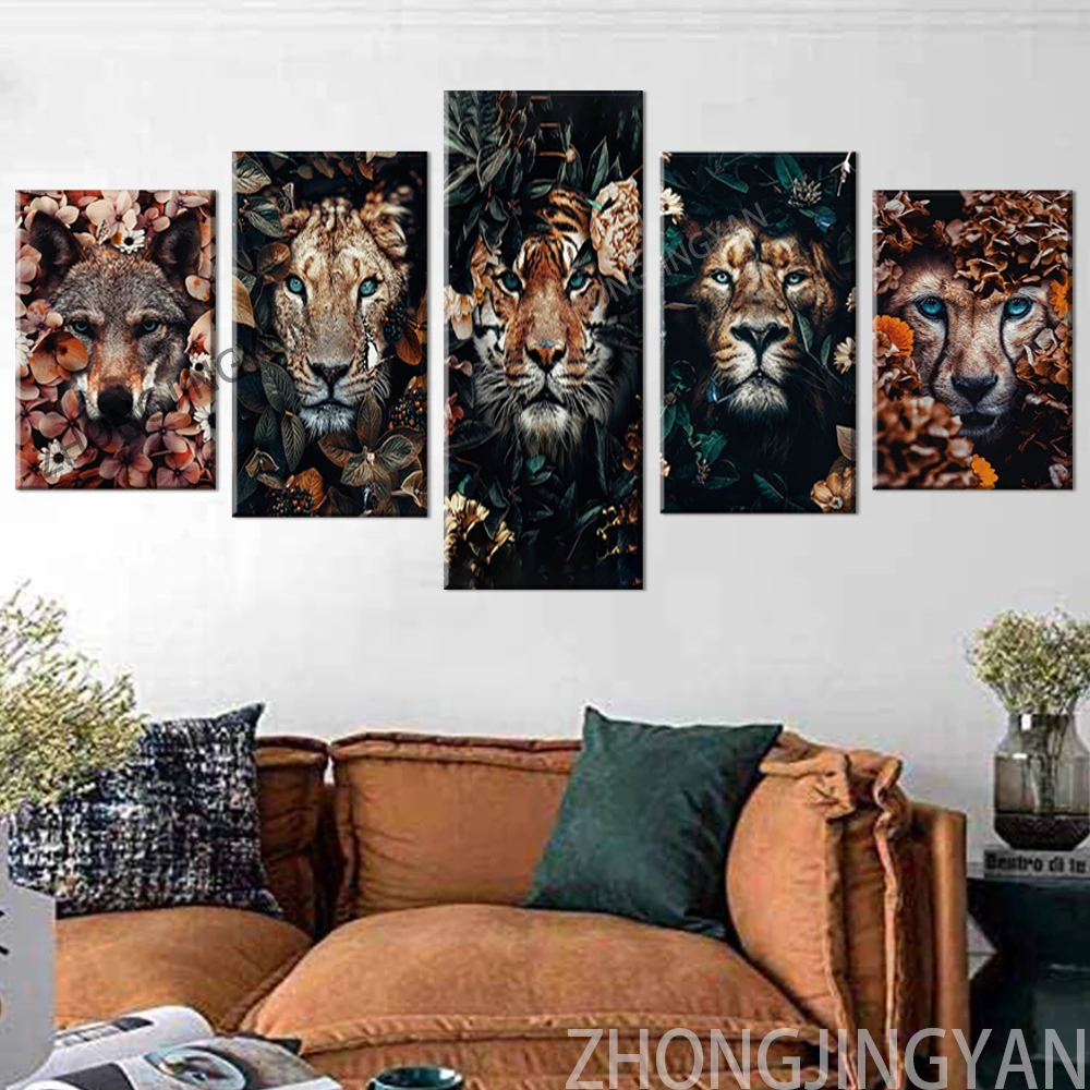 Настенная картина с изображением цветов, Листьев, дневника, тигра, гориллы, джунглей, Картина на холсте, картины для гостиной