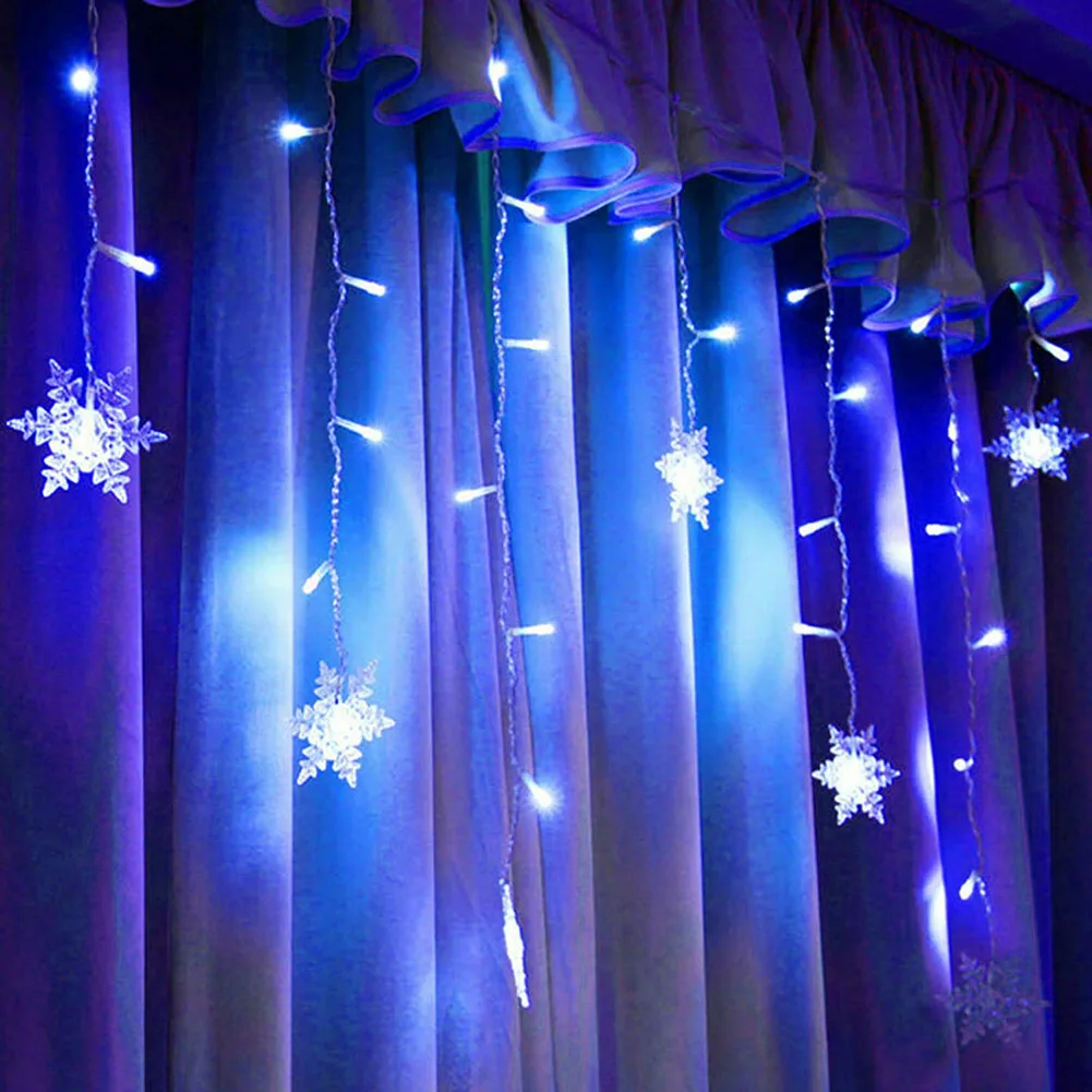 Рождественская гирлянсветильник-занавес из снежинок, уличная декора...