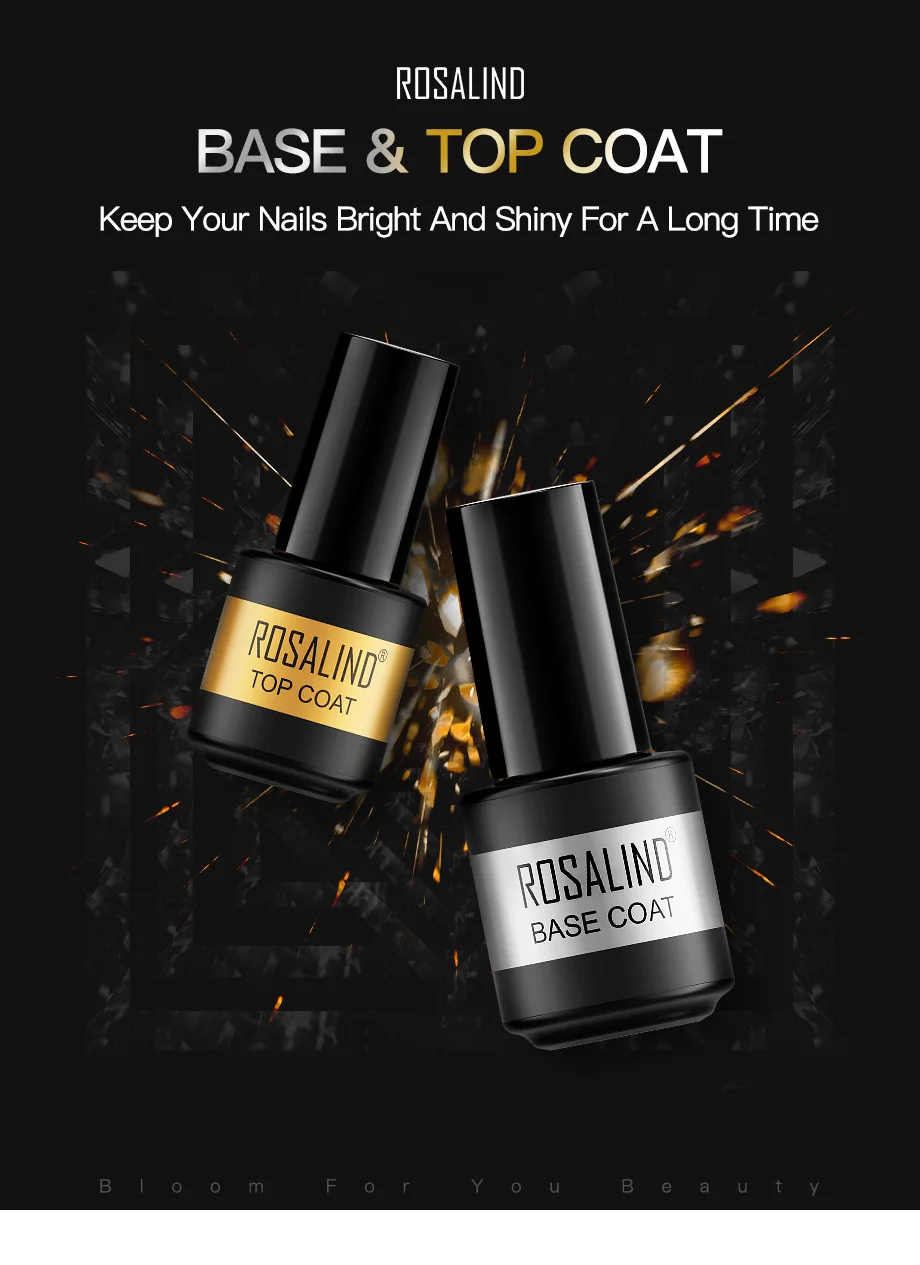 ROSALIND 7 мл набор гель-лаков основа и верхнее покрытие носок УФ/Светодиодная лампа сохраняет ваши ногти яркими и блестящими в течение длительного времени