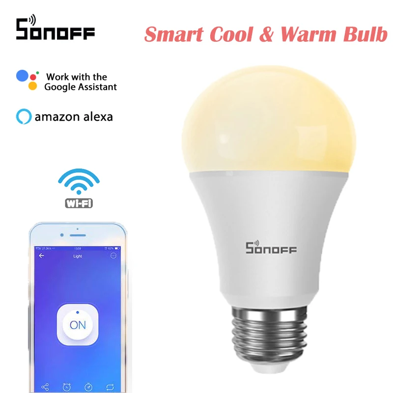 Умная Светодиодная лампа SONOFF 9 Вт с Wi-Fi, RGB-подсветкой и таймером для управления через приложение eWeLink, совместимая с Alexa Google Home Automation