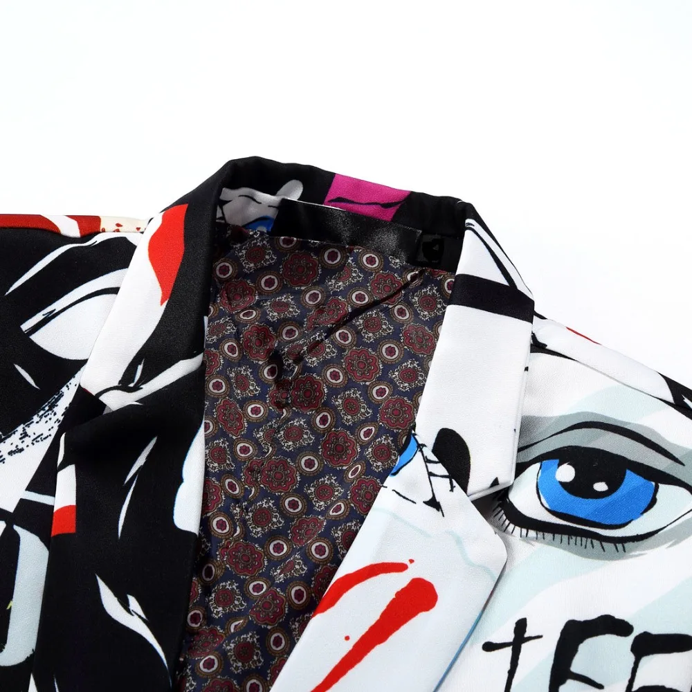 Новый Белый мужской модный блейзер с принтом, популярный Повседневный облегающий костюм большого размера на бедрах для мужчин, куртка, костюм певицы, цветное пальто