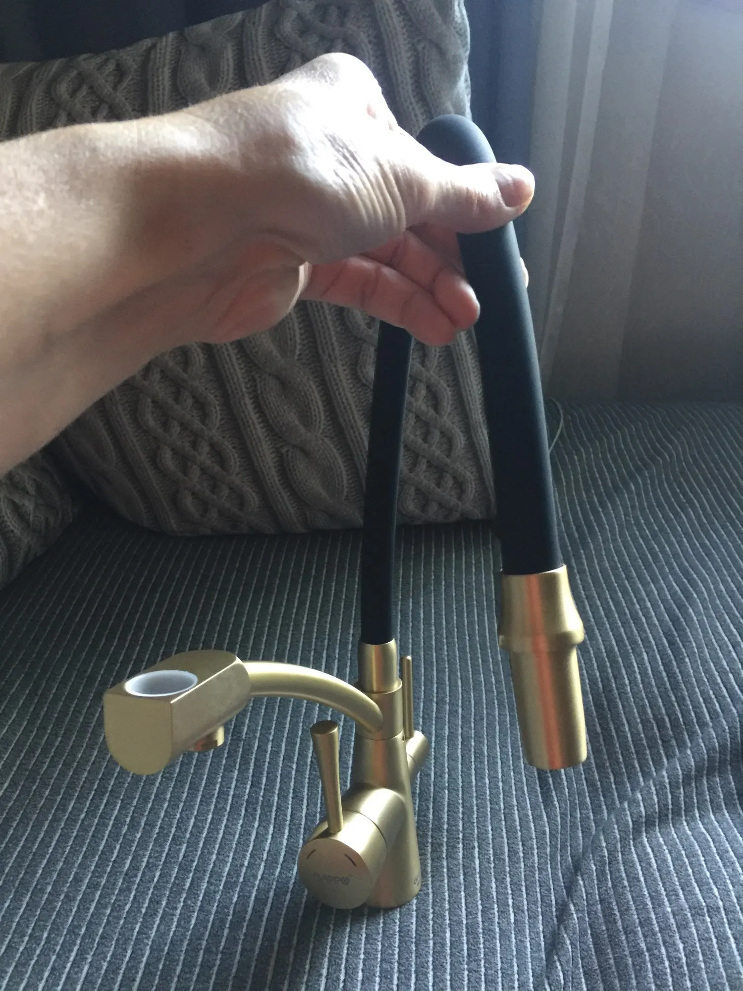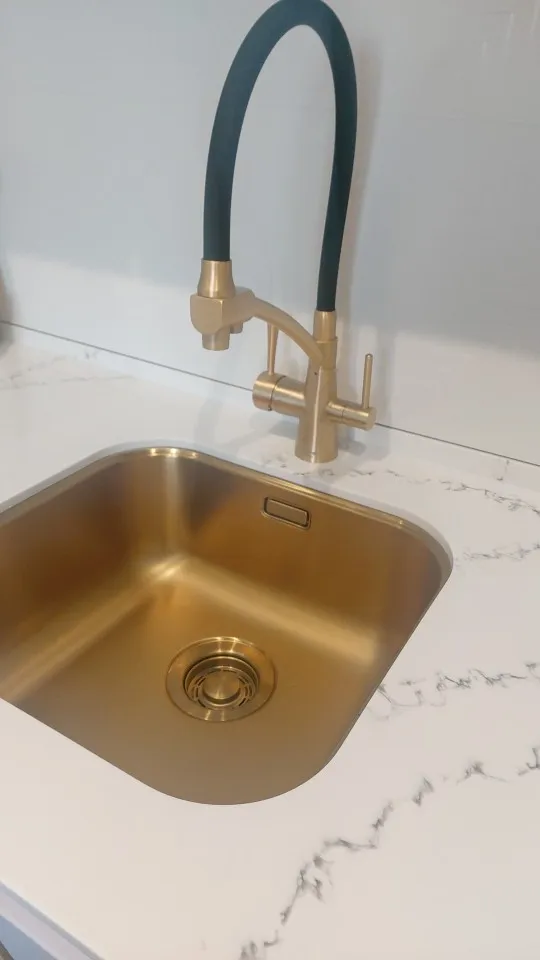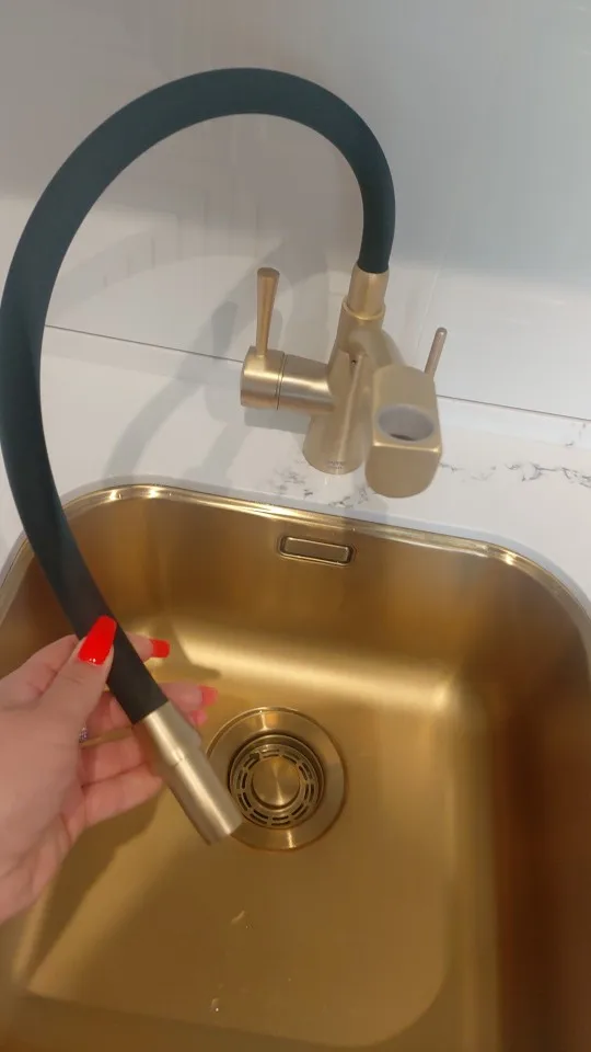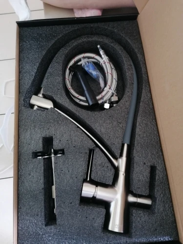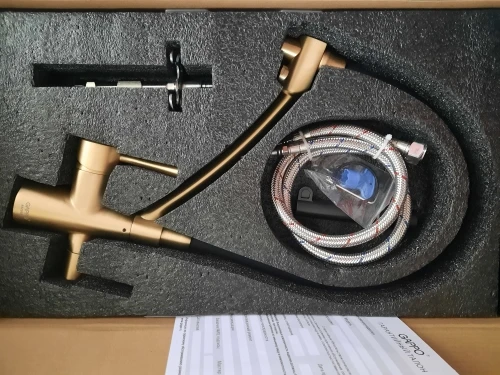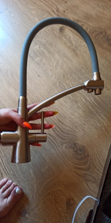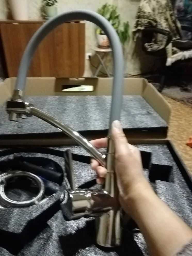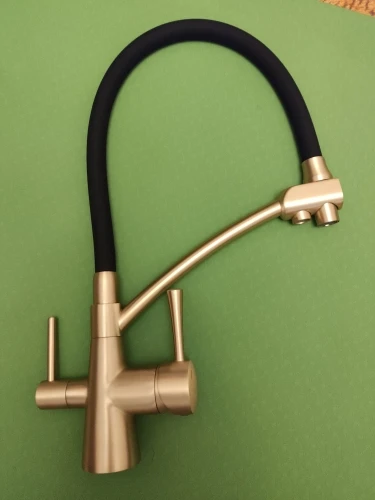Смеситель огонь! Тяжёлый, качественный, трубка какая то матовая резиновая, мягкая. Пока кухня в ремонте, но я не сомневаюсь в качестве этого брэнда. У нас уже есть смеситель в ванной этой фирмы, отлично служит. Продавцу ответное спасибо, за то что поменял цвет с золотого на черный, хотя просил до последнего доплатить за черный, хотя когда я заказывала все цвета стоили одинаково, но потом ценники стали разные и черный стал на 1000 дороже золотого.