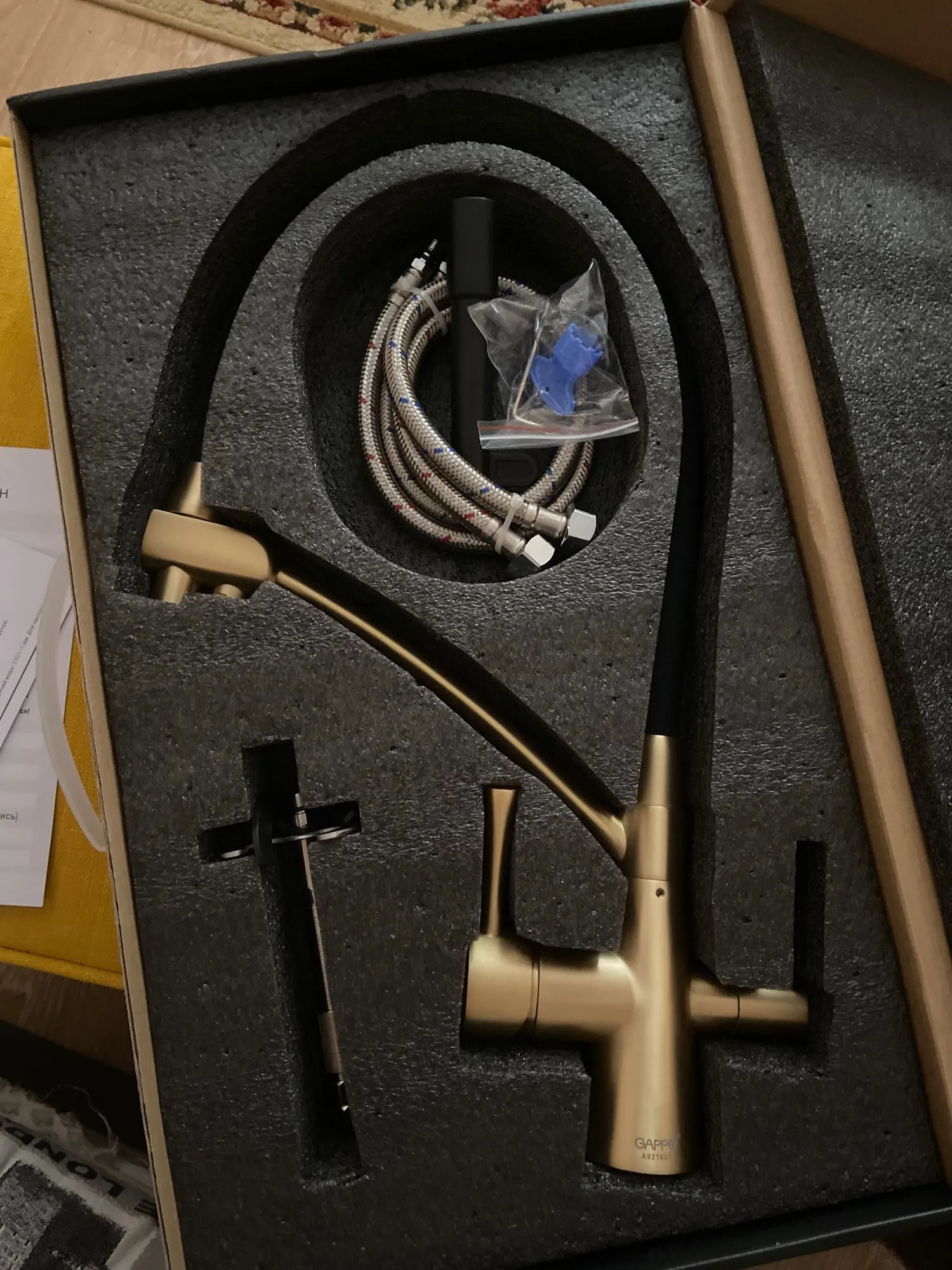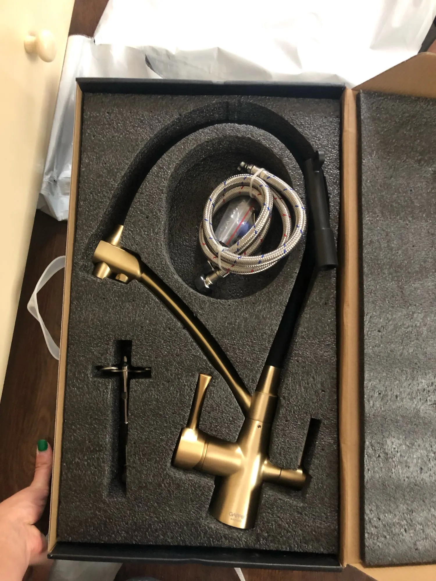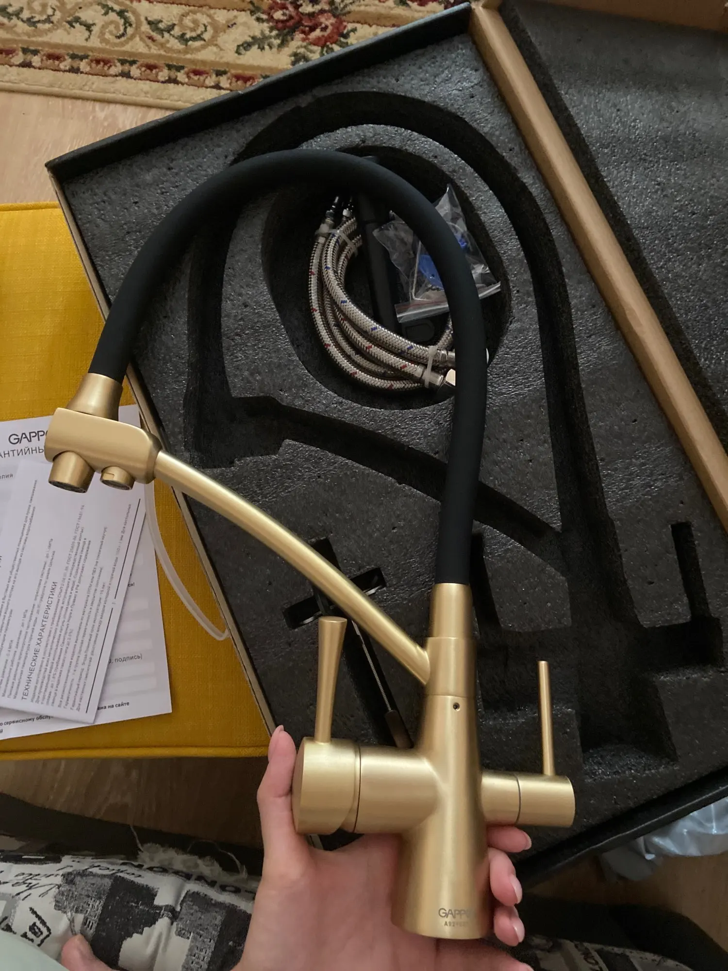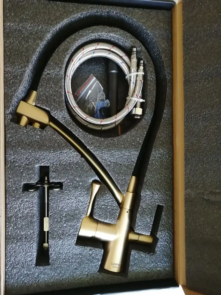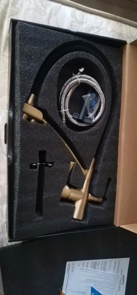 Пришёл мой кран , сначала заказала полностью чёрный , но потом передумала , и попросила продавца заменить на золотой! Продавец просто душка ))) заменил! Спасибо огромное кран просто топчик гарантия 5 лет качество супер доставка 3 дня! Продавца однозначно рекомендую!!!