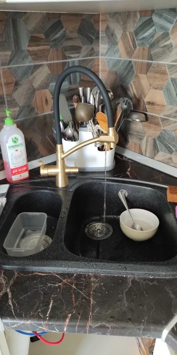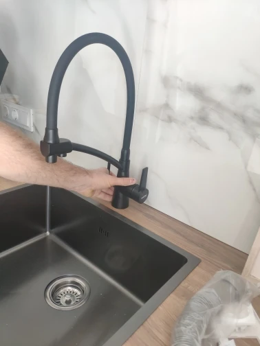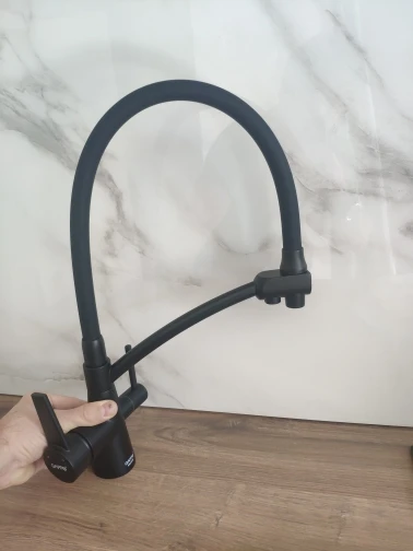 Крутой кран! Пользуем всей семьей в загородном доме. Легко устанавливается - легко мыть раковину. Доставка быстрая цвет прикольный матово черный! Спасибо продавцу за промокод.