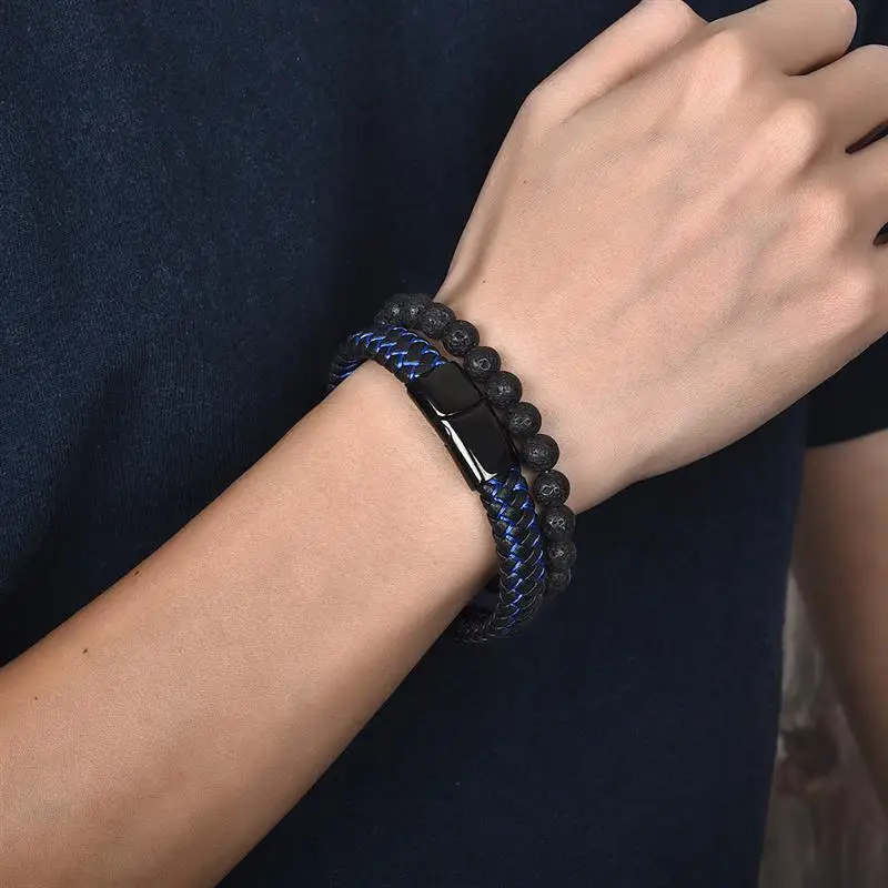 Браслет из натурального камня лавы и бусин для мужчин, Тибетский браслет с диффузором чакры, модные ювелирные изделия, Прямая поставка