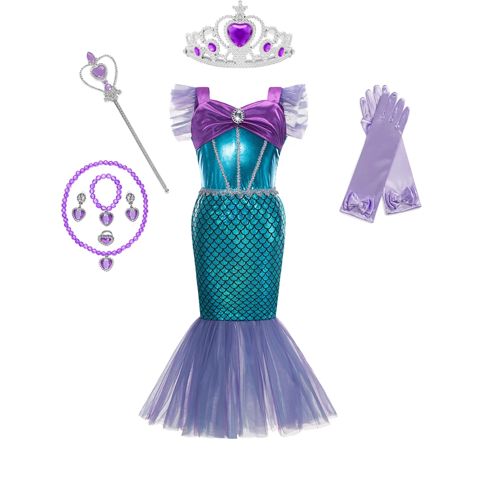 Платье принцессы Русалочки Ариэль для девочек, детский нарядный костюм на Хэллоуин, детская одежда для карнавала, дня рождения, летнее платье