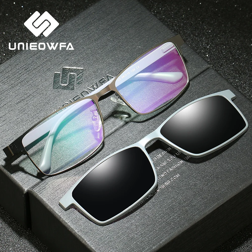 Очки Мужские поляризационные в магнитной оправе с клипсой, прозрачные очки для коррекции близорукости