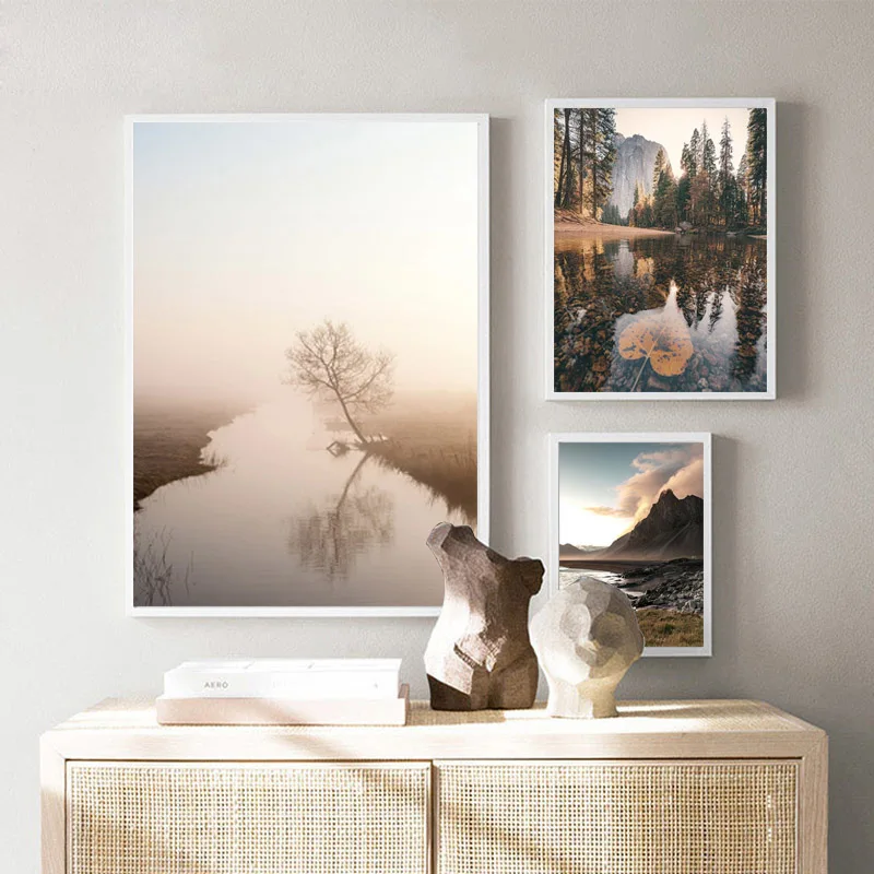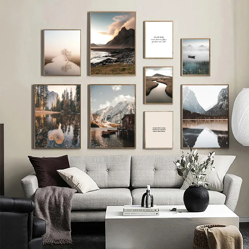 Утро Плакат С восходом солнца Природа Пейзаж Холст Картина горного озера настенный художественный принт галерея цветочные картины для гостиной